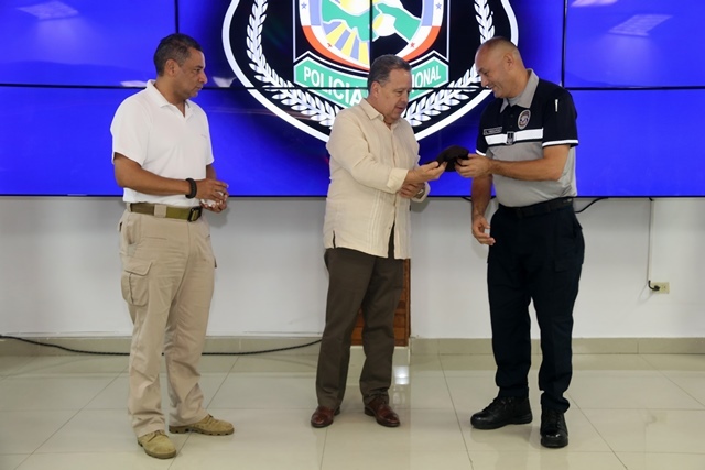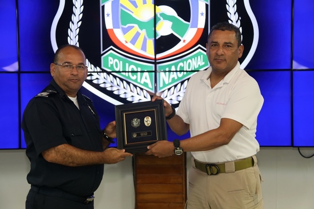 El Director General de la Policía Nacional Alonso Vega Pino y el Subdirector Jacinto Gómez, junto al directorio Policial, recibieron al viceministro de Seguridad Pública de Costa Rica Luis Carlos Castillo Fernández y al director de Fronteras de Costa Rica Alan Flores, este jueves 6 de septiembre de 2018, en la sede de la institución en el corregimiento de Ancón. Los oficiales encargados de la Unidad Preventivas Comunitaria y la Policía de Niñez y Adolescencia, explicaron como se han ido adentrando en varios puntos del país, obteniendo resultados positivos. El viceministro de Seguridad Pública de Costa Rica, Luis Carlos Castillo, manifestó que copiarán los modelos de los programas preventivos empleados por la Policía Nacional de Panamá en su país y de la misma manera llegar puerta a puerta a cada una de las comunidades. “Somos una Policía que nos preocupamos por nuestra sociedad y la convivencia pacífica entre nuestros ciudadanos, es por ello, hemos llegado a las escuelas, barrios y comunidades para escucharlos y conocer de la mano sus inquietudes” enfatizo el jefe policial Alonso Vega Pino. Finalmente, los oficiales de la Policía Nacional hicieron entrega de presentes a sus homólogos costarricenses y viceversa. |