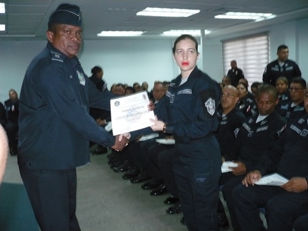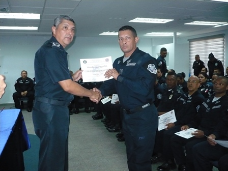 Con la participación de 126 oficiales con el rango de Subtenientes, que aspiran al rango inmediato superior, la Dirección Nacional de Docencia, realizó el Curso de Seguridad Operacional, en las aulas de la Escuela de Oficiales de Policía “Dr. Justo Arosemena” el cual busca fortalecer las competencias cognoscitivas y psicomotoras del futuro líder. Por tres semanas los oficiales recibieron instrucciones en liderazgo y don de mando, inteligencia policial, procedimiento de tránsito, Seguridad Ciudadana, procedimientos ante un menor de edad, como atender la Violencia Domestica, Sistema Penal Acusatorio, Primer Interviniente, y mediación para la convivencia entre otros. Los uniformados al llegar al rango de Oficial de Policía, tienen en sus manos administrar y organizar el talento humano de acuerdos a las necesidades del servicio policial. Para el Comisionado Manuel De León, Director Nacional de Docencia, es de suma importancia, que los oficiales manejen los temas impartidos y sepan qué estrategia utilizar ante un evento donde pueda estar en riesgo la vida y la paz de los ciudadanos.