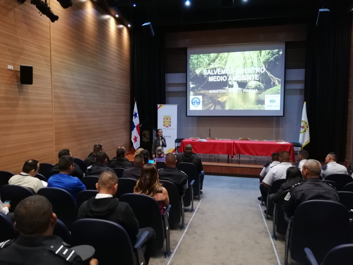 Más de 80 miembros de estamentos de seguridad participaron esta mañana en el taller Contra los Delitos Ambientales en Panamá, dirigido por funcionarios del Ministerio Público y unidades policiales de la Dirección de Investigación Judicial (DIJ). La capacitación tuvo como objetivo sensibilizar a los participantes sobre el tema y fortalecer el trabajo continuo de proteger los recursos naturales y conservar la biodiversidad del país. La Fiscal de Investigación y Seguimiento de Causas Ambientales, Fátima Sánchez explicó la importancia de proteger el ambiente y la vida silvestre, cómo detectar un delito ambiental, cómo procesar las escenas y los sospechosos, así como las sanciones que establece la Ley. En los últimos meses el Ministerio Público, el Ministerio de Ambiente y la Policía Nacional a través de la Policía Ecológica y la División Contra los Delitos Ambientales de la DIJ, han desarrollado operaciones a fin de captar en estos hechos y llevar a los tribunales a quienes resulten responsables. “Desde la tala de árboles protegidos hasta el tráfico ilegal de especies en peligro de extinción, han sido detectado por miembros de estamentos de seguridad”, agregó el capitán Alberto Mejía de la DIJ. La Policía Nacional reafirma su compromiso en la lucha contra el tráfico de vida silvestre y la tala de árboles. Denuncia estos delitos llamando a la línea de emergencia policial 104. |
