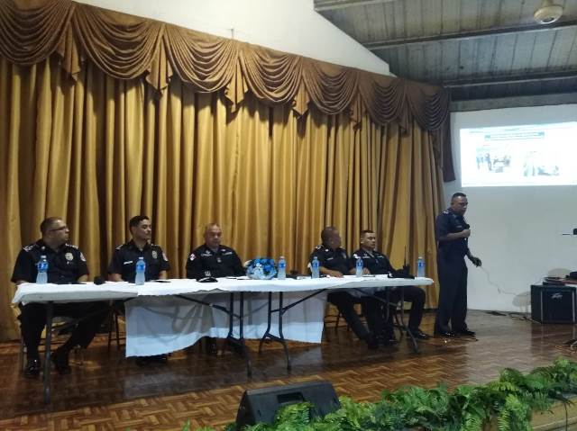 Oficiales jefes de áreas de la 15° Zona Policial, al mando del Comisionado Jorge Miranda M. Jefe de la zona, participaron de la rendición de cuentas correspondientes al 2do. Cuatrimestre del 2018, con la participación de los líderes comunitarios. En esta actividad organizada por las unidades del Servicio de Seguridad Ciudadana, tiene como objetivo principal dar a conocer las diferentes acciones tomadas en los 4 corregimientos que componen la 15va zona, con el fin de minimizar los delitos de mayor impacto. Luego de la presentación de los jefes de áreas el Comisionado Jorge Miranda M. se dirigió a los presentes haciendo énfasis en la importancia de los programas de Vecinos, Transporte y Comercios Vigilantes y que se han aumentado las visitas a residencias, llevando principalmente la orientación referente a lo que está ocurriendo y que los vecinos sientan que tienen un policía dentro de su comunidad. Al final los líderes comunitarios nos manifestaron las inquietudes que tienen en sus comunidades, para trabajar en equipo y buscar la pronta solución a los mismos. |