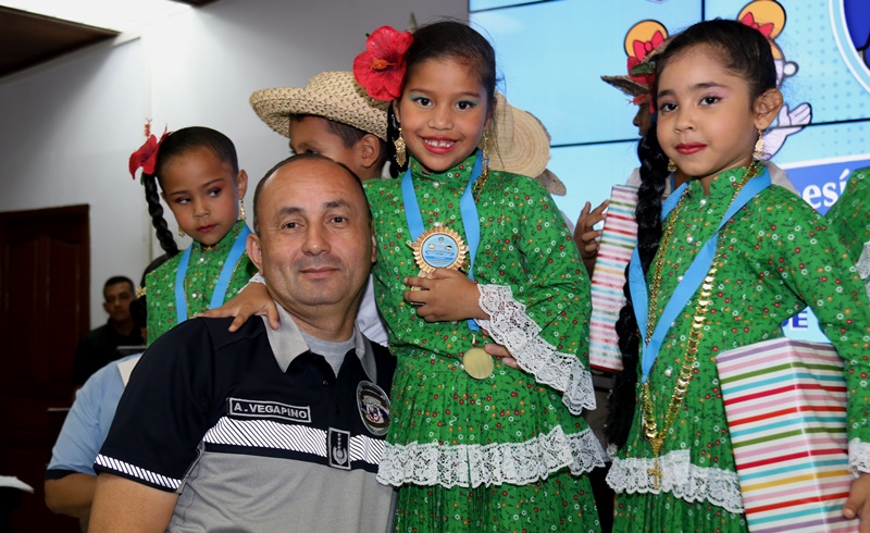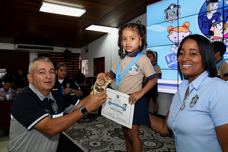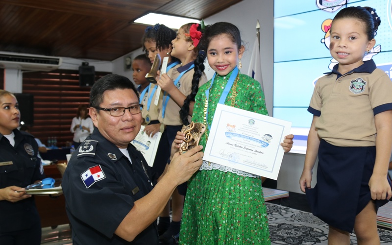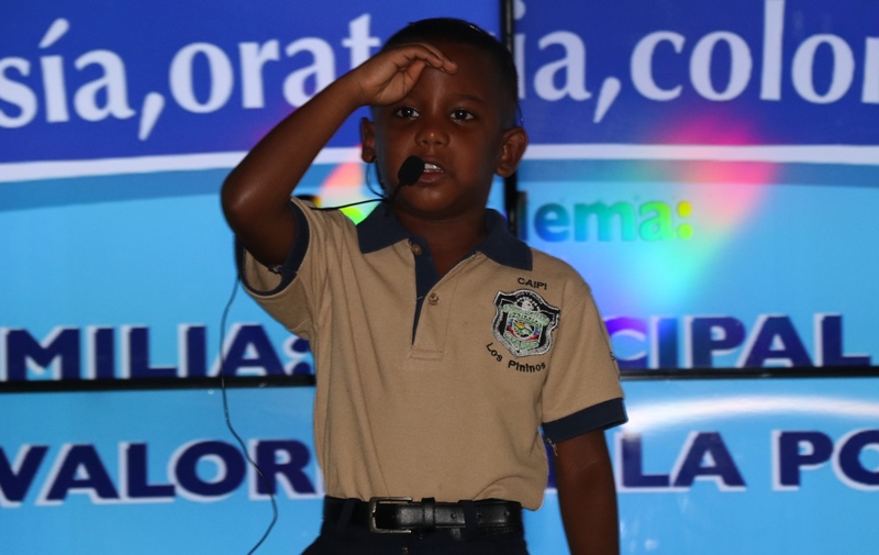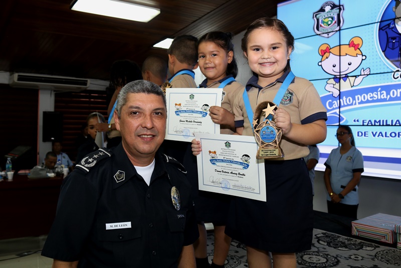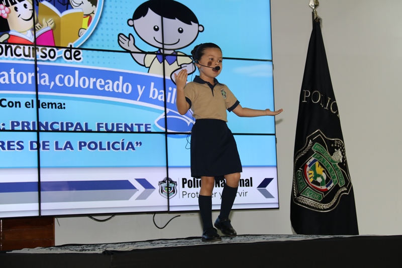 “Agradezco a los padres de familia, a los organizadores del evento y maestros de nuestros centros infantiles, porque ellos cuidan el tesoro más sagrado de nuestra institución, cuidan a los hijos de nuestros policías, por ello debemos inculcarles los valores”, destacó el Director General de la Policía Nacional, Alonso Vega Pino, en el concurso Inter CAIPI que se realizó por 6 año consecutivo en nuestra sede en Ancón. Con el lema “Familia: principal fuente de valores de la Policía Nacional”, los niños de los Centros de Atención Integral a la Primera Infancia en los niveles de Maternal, Pre Jardín y Jardín demostraron su capacidades y habilidades en las diferentes facetas de esta competencia. La niña Dana Álvarez representante de Veraguas, obtuvo el primer lugar en Oratoria; mientras que en Poesía, ganó Debbie Moreno, representante de la provincia de Chiriquí. Por su parte, la pequeña Kerlly Núñez se llevó el primer lugar en Coloreado y en Canto, el triunfo fue para Camila Hernández, ambas de la provincia de Veraguas. Este año el concurso contó con la categoría de baile folclórico, donde resaltaron la cultura de nuestras regiones, el ganador fue el grupo de la provincia de Veraguas con su baile “La Gallinta”. El Director General Alonso Vega Pino junto a miembros del Directorio Policial fueron encargados de entregar las medallas, certificados, estatuillas conmemorativas al concurso y obsequios a los participantes cuyas edades oscilan entre los cuatro a seis años. Miembros del Directorio Policial, oficiales, clases, agentes, personal no juramentado y familiares aplaudieron y mostraron su orgullo de ver el talento existente en estos niños futuros profesionales del país. La Policía Nacional a través de estas actividades busca resaltar los valores como base principal de un proceso de formación para las futuras generaciones educadas en los Centros Atención Integral para la Primera Infancia de esta institución.