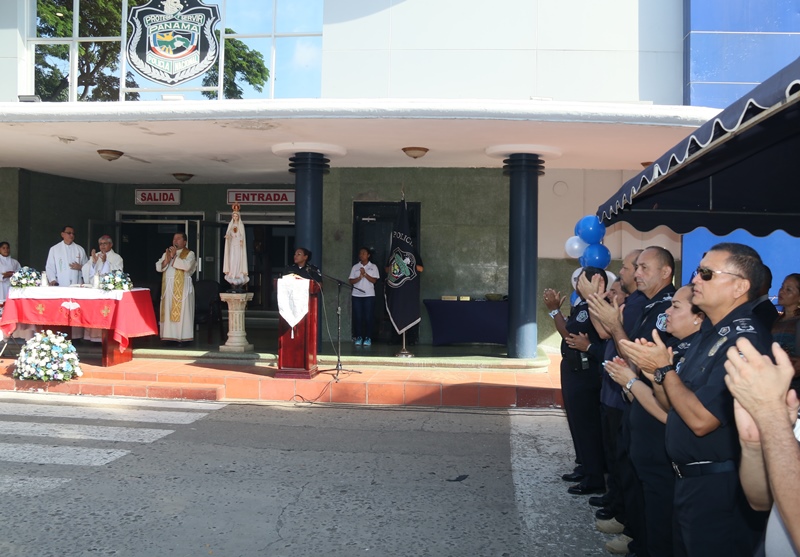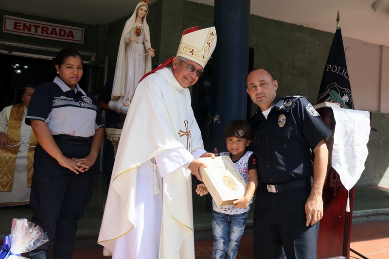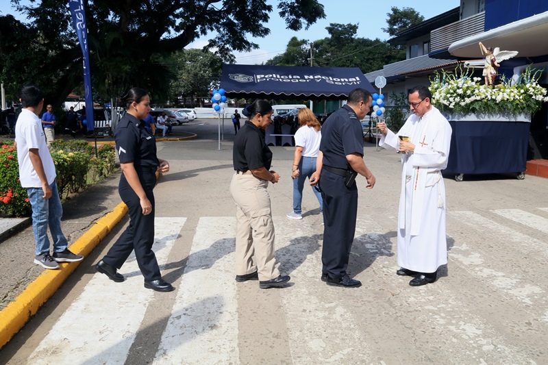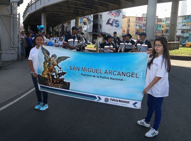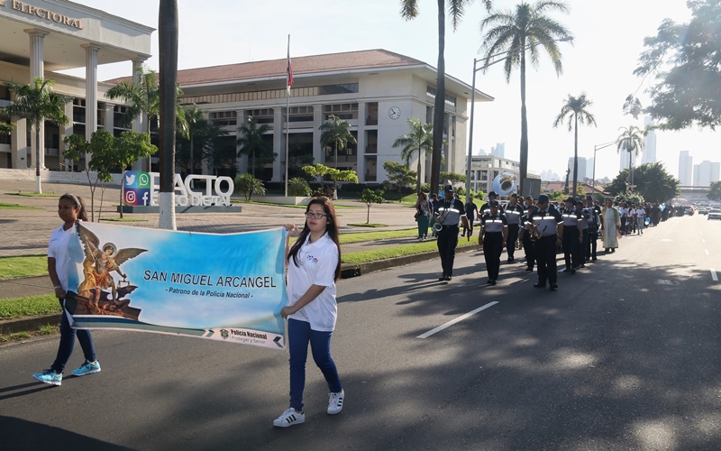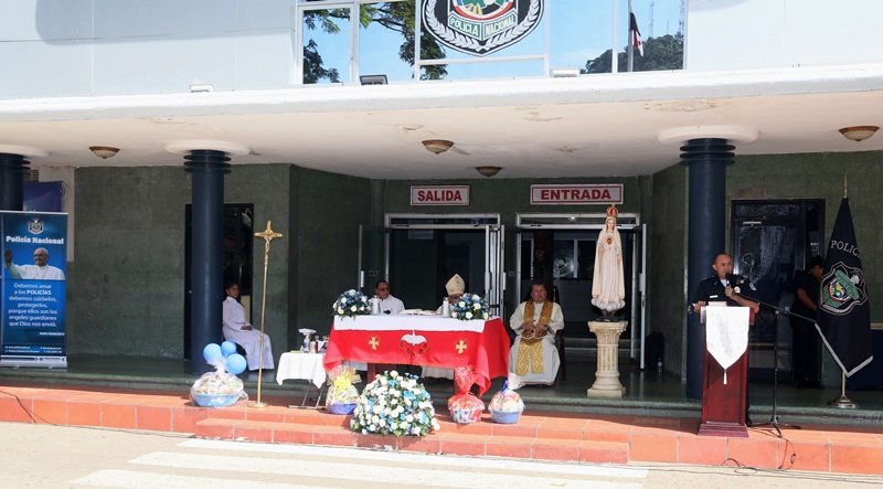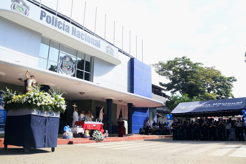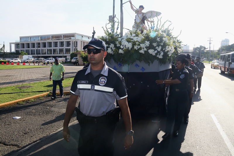 “El papel de San Miguel Arcángel es el papel que hace la Policía Nacional, nosotros somos los guardianes de los ciudadanos”, destacó el Director General de la Policía Nacional, Alonso Vega Pino durante la misa en honor al patrono y protector de los uniformados “San Miguel Arcángel”, que se desarrolló en la sede de la institución en el corregimiento de Ancón. La familia policial está de fiesta patronal. Honró hoy a San Miguel Arcángel, patrono de la Capilla que lleva su nombre, motivo por el cual se realizó una procesión, misa, entrega de canastillas, y obsequios a los presentes. El Director General de la Policía Nacional, Alonso Vega Pino junto al Directorio, y miembros de otros estamentos de seguridad, encabezaron la procesión que partió en horas de la mañana desde la subestación policial de San Miguel, este sábado 29 de septiembre de 2018. La Eucaristía fue presidida por el obispo Pedro Hernández Cantero, y los capellanes Edgar Flores y Arnulfo Giménez, a la que acudieron hijos de unidades policiales quienes están recibiendo clases de catequesis, para posteriormente realizar su Primera Comunión y Confirmación, además de otras personalidades que nos honraron con su presencia. El Pedro Hernández Cantero hizo énfasis en el trabajo que realizan las unidades policiales como un compromiso de todos, los instó a seguir trabajando por la seguridad y tranquilidad de los ciudadanos. San Miguel Arcángel se le considera como el Patrón de los soldados, las unidades policiales se encomiendan a él en cada labor realizada a lo largo y ancho del país.