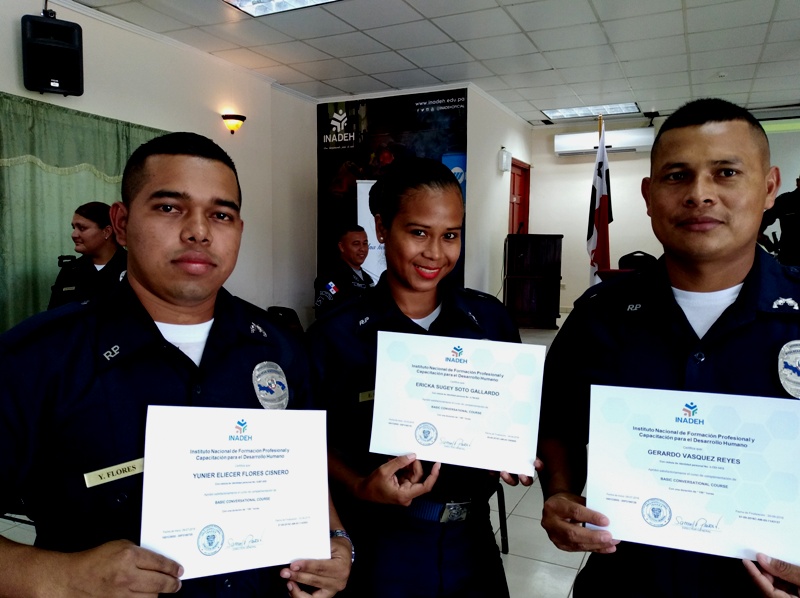 Como parte de la preparación profesional hacia la Jornada Mundial de la Juventud 2019, unas 23 unidades policiales de la 2da Zona, culminaron con éxito el Curso Básico de Ingles, brindado por el Instituto Nacional de Formación Profesional y Capacitación para el Desarrollo Humano (Inadeh) en la ciudad de Penonomé. Rubén Escobar director del Instituto Nacional de Formación Profesional y Capacitación para el Desarrollo Humano (INADHE) en Coclé, resaltó importancia de transmitir lo aprendido a los miles de jóvenes que visitarán estas tierras. El curso que tuvo una duración de 4 semanas abarcó técnicas como el dominio del idioma inglés, con el objetivo que las unidades estén preparadas para el evento católico. Cabe destacar que en el acto se contó con la presencia del vicegobernador de la provincia de Coclé ingeniero Rommel Quirós, el Comisionado Aníbal Prados, jefe de la 2da Zona Policial, los instructores del curso el profesor Luis Vega, la profesora Judith Díaz, el licenciado Raúl Rivas, administrativos y unidades que acompañaron.