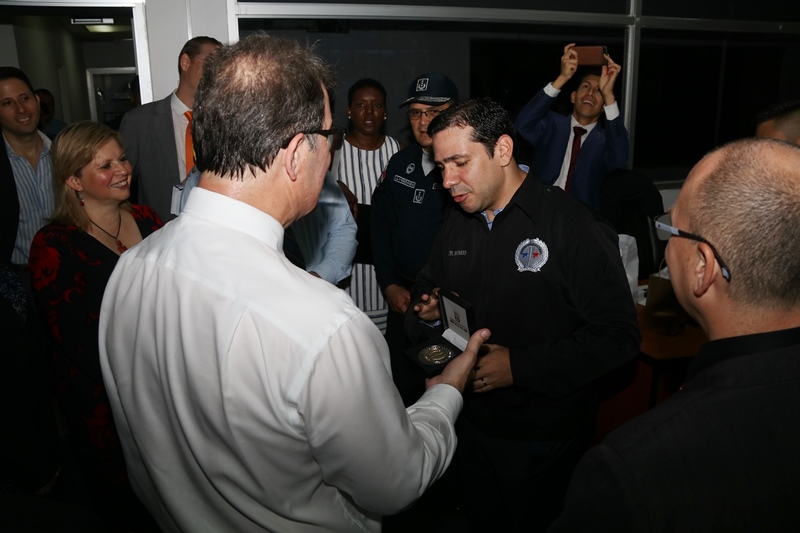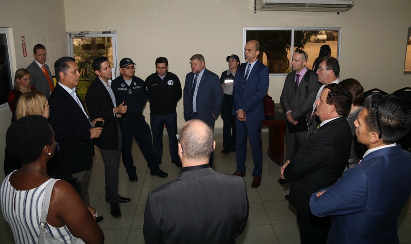 El Viceministro de Seguridad Pública (MINSEG), Jonathan del Rosario y el Director General de la Policía Nacional Alonso Vega Pino recibieron a la Embajadora de Canadá en Panamá, Lilly Nicholls y un equipo de congresistas canadienses en la sede principal de Ancón, quienes conocieron los avances del Centro de Operaciones C-5, el Centro de llamadas 104 y el Centro de Operaciones de la Policía Nacional. El viceministro del Rosario destacó la colaboración de la Embajada de Canadá en materia de seguridad a los estamentos de seguridad para fortalecer sus capacidades de defensa. Explicó que el C-5 es un centro de operaciones que integrará los estamentos de seguridad, migración e instituciones, equipos de respuesta y emergencia de la Fuerza de Tarea Conjunta, para dar respuesta efectiva a la sociedad y en efecto a la Jornada Mundial de la Juventud 2019 que se celebrará en Panamá”. Los delegados canadienses iniciaron su recorrido en la infraestructura del edificio que albergará el nuevo Centro de Operaciones denominado C-5; posteriormente visitaron el C-5 interino, el Centro de llamada 104 y el Centro de Vigilancia del Centro de Operaciones actual. |