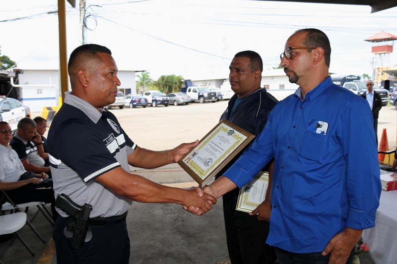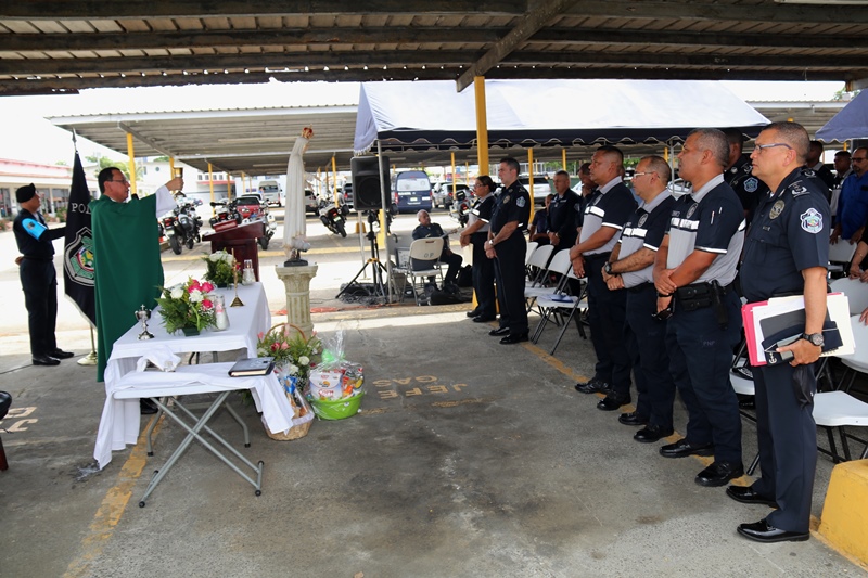 “Felicitamos a estos hombres y mujeres que conforman el Grupo de Apoyo al Servicio, en su XVIII aniversario, quienes día y noche salen a la calle arriesgar su vida, dejando hijos, esposo, esposas, padre y madre, familia en general” destacó el comisionado Jacinto Gómez, Subdirector General de la Policía Nacional. Este miércoles en la sede policial de Ancón, las unidades festejaron su aniversario con una actividad eclesiástica. El capellán de la Policía Nacional, Edgar Flores bendijo los patrullas asignadas a este servicio policial que brindan apoyo rápido y eficaz a las diferentes zonas de Policía a fin de disminuir el índice delictivo; mediante la ejecución de operaciones policiales; a su vez elevó una oración. Por otro lado, se desarrolló una maratón, convivio y se visitó el Hospital Santo Thomas para entregar canastillas; además se efectuaron las tradicionales dianas. Igualmente, se reconoció la labor de los que integran este servicio y se distinguió a un grupo de oficiales que pasan al retiro luego de 30 años de servicio. A esta celebración asistió el Subdirector General de la Policía, Comisionado Jacinto Gómez, miembros del directorio de la Policía Nacional, oficiales, clases, tropa y personal no juramentado.