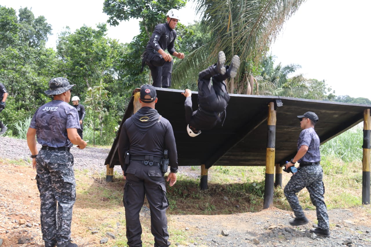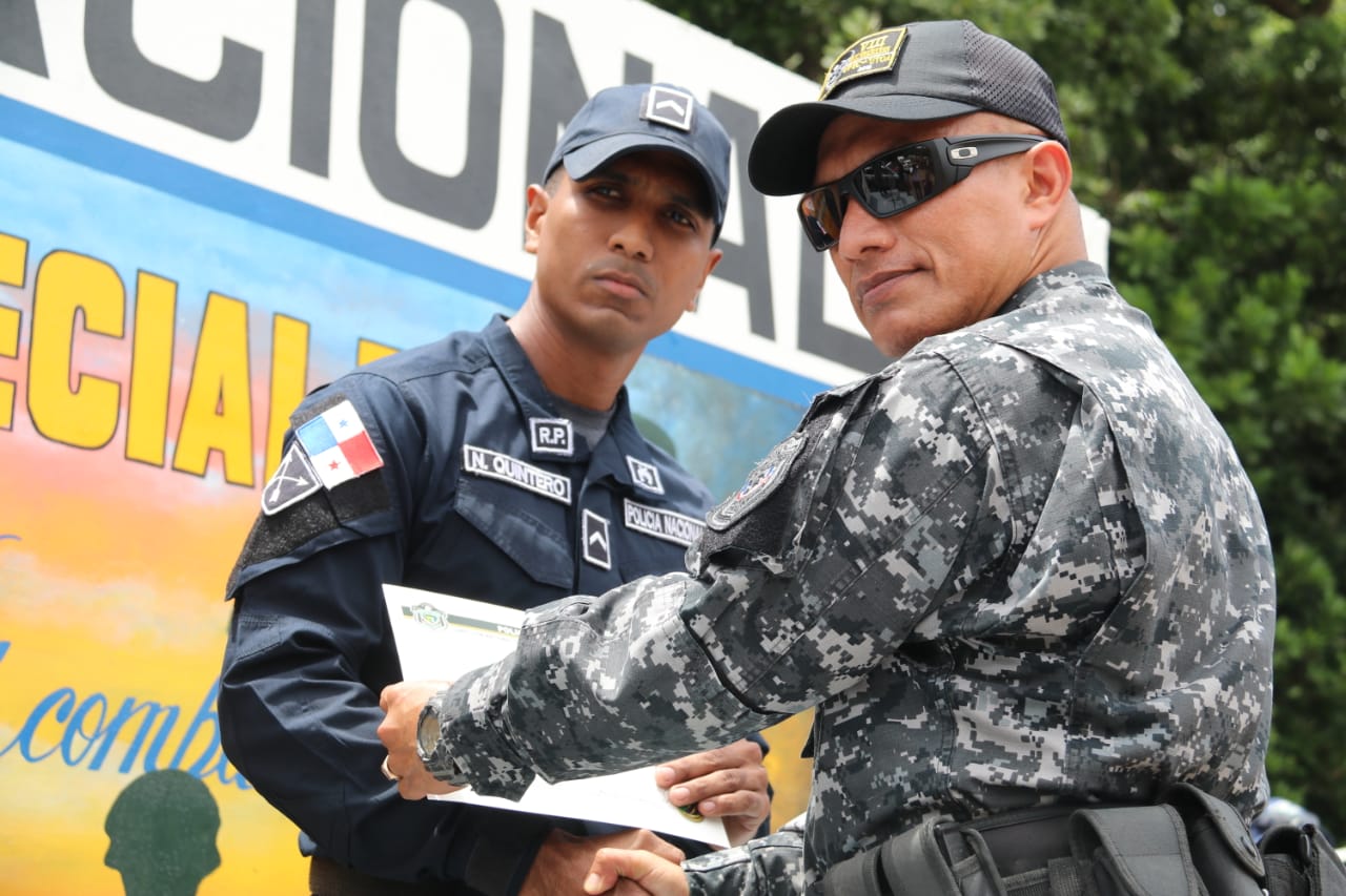 Con una solemne misa inició la celebración del VIII aniversario de la Unidad de Fuerzas Especiales Contraterrorismo (UFEC) y la Unidad Táctica de Operaciones Antidrogas (UTOA) en Cerro Tigre, este 5 de octubre de 2018. Los uniformados que pertenecen a la Dirección Nacional de los Servicios Policiales Especiales (DINASPE), realizaron la primera Competencia pista de obstáculo denominado “”Infierno Verde” donde participaron 16 equipos de las diferentes direcciones, zonas y dependencias, que consistió en poner en prácticas sus destrezas físicas y habilidades. “Este es un evento que busca compartir entre compañeros de otras dependencias y sepan cómo son los entrenamiento en la UFEC” destacó el comisionado Javier Rodríguez el jefe de la Dirección Nacional de los Servicios Policiales Especiales. Durante la competencia se hicieron varios reconocimientos uno de ellos al teniente Marcos Santos y al cabo 2 Noel Quintero de la UFEC quienes se han destacado en la labor policial y además por su alto grado de responsabilidad, disciplina y sacrificio También, se condecoró al Comisionado Javier Rodríguez jefe de la Dirección Nacional de los Servicios Policiales Especiales y al mayor Friederick Almengor subdirector Nacional de los Servicios Especiales Policiales por su entrega y dedicación en el trabajo realizado. Finalmente, se dio las premiaciones de la competencia donde el Grupo de Apoyo al Servicio se coronó campeón con 10 minutos 15 segundo de recorrer la pista de obstáculo, mientras que el segundo lugar lo ocupó el equipo del Bloque de Búsqueda con 11 minutos 25 segundos y el tercer lugar el Instituto Superior Policial con 18 minutos 02 segundos. |