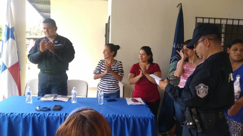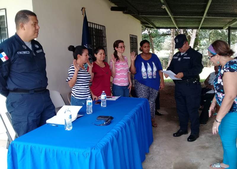 Unidades del Servicio de Seguridad Ciudadana, de la 4ta. Zona Policial de Chiriquí, con la finalidad de estrechar lazos de amistad y confianza con la comunidad, inauguraron el Programa Vecinos Vigilantes, en la Urbanización Santa Lucia, de la ciudad de David. La actividad la presidió el Subcomisionado Ovidio Gil, Ejecutivo de la 4ta. Zona Policial de Chiriquí, además estuvieron agentes del Servicio de Seguridad Ciudadana, la Licenciada Rita Martínez, Presidenta del Programa en el mencionado lugar y miembros de la comunidad. El acto dio inicio con las palabras de reflexión por parte de la Profesora Ana Aparicio, mientras que la Licenciada Martínez, agradeció a la Policía Nacional, por su dedicación y tiempo de incluirlos en este programa preventivo, donde en conjunto logramos minimizar los casos delictivos. Por otra parte, la juramentación a los integrantes del programa la realizó el Teniente Hernán Beitia. La develación de la lámina que los identificará como parte del programa la efectuó el Subcomisionado Gil, quien a la vez dio las palabras de Inauguración, manifestando que es un placer y orgullo observar que más comunidades se integren a este programa, creando así una alianza de seguridad con la comunidad.