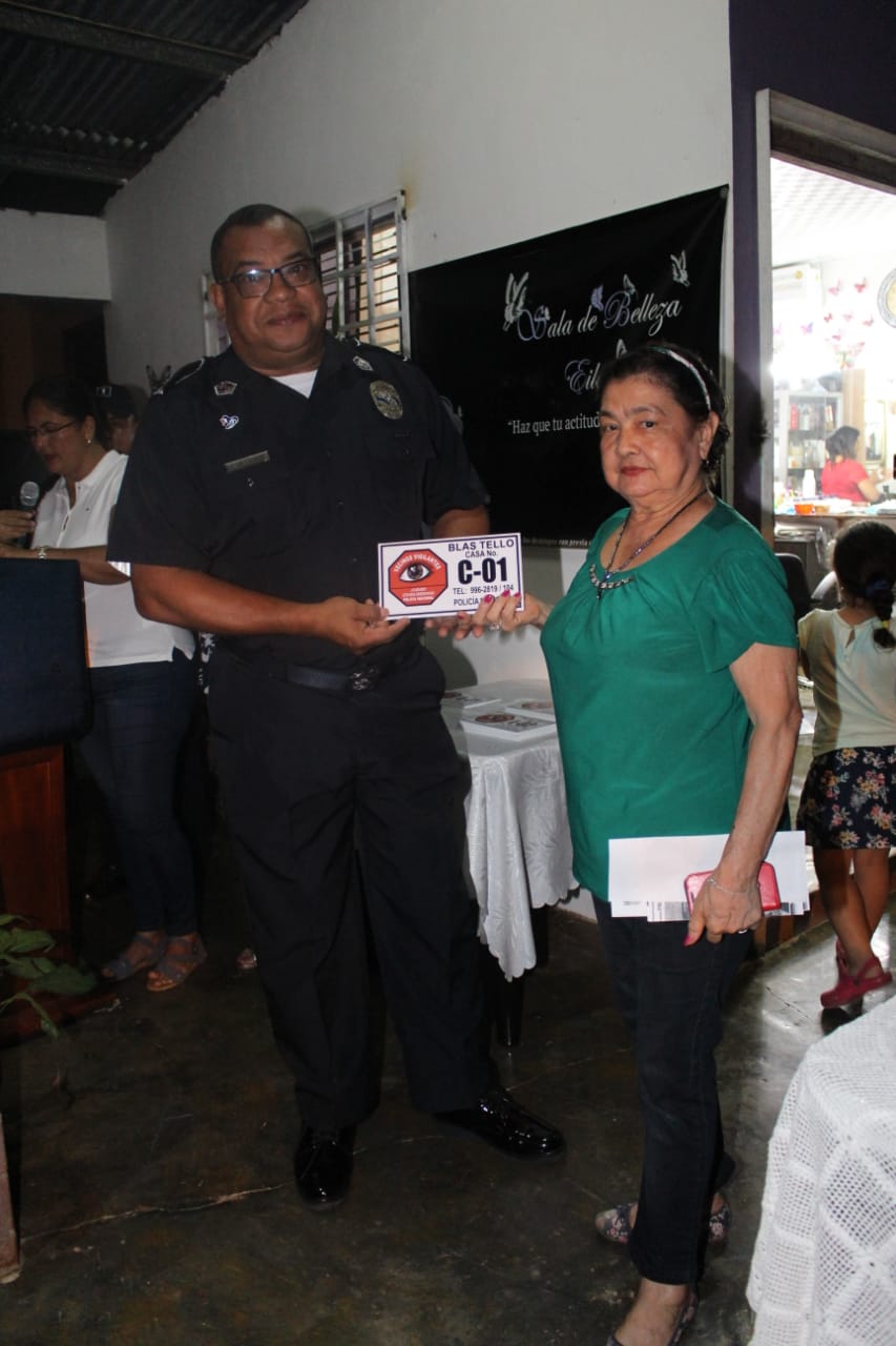 Unidades de la Zona de Policía de Herrera inauguró el programa de Vecinos Vigilantes en la Calles 2da., 5ta., y 6ta. de la Barriada Blas Tello, del distrito de Chitré, con la participación del Comisionado Urracá De La Hoz, Jefe de La Zona y su equipo de la Oficina Seguridad Ciudadana. Al acto de inauguración se dieron cita una gran cantidad de moradores, quienes se mostraron motivados, participando en las actividades de vecinos vigilantes y en medio de aplausos acompañaron a los miembros de la Policía Nacional al acto de develación del logo que identifica a la comunidad, como parte de los programas comunitarios en beneficio de la seguridad. El Jefe policial realizó la juramentación a las coordinadoras, que se comprometieron al trabajo mancomunado con la Policía Nacional, para velar por la seguridad de la barriada e hizo entrega de placas de numeración, con su respectiva identificación del programa de vecinos Vigilantes para la colocación en la residencias a cada propietario. El Comisionado De La Hoz se dirigió a los presentes para felicitarlos por tan sabia decisión de unirse a los programas comunitarios de la Policía Nacional y los exhortó a mantener la interacción constante con la primera institución de seguridad del país, para mantener la paz y tranquilidad de esta comunidad.
