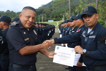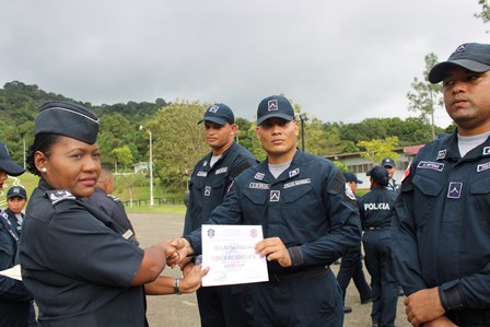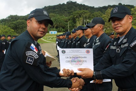 Con el objetivo de fortalecer los conocimientos obtenidos en la formación de agentes, unas 175 unidades con el rango de Cabo primero, culminaron el curso de Seguridad Local, realizado por el Centro de Capacitación y Especialización Policial (CECAESPOL), de la Dirección Nacional de Docencia. La ceremonia de culminación del curso fue presidido por la Mayor Márquela González, Jefa del CECAESPOL quien a nombre del Director Nacional de Docencia, Comisionado Manuel De León, instó a los aspirantes al rango inmediato superior a seguir preparándose ante las exigencias de la ciudadanía que cada vez más está pendiente de la labor que desarrolla la Fuerza Pública. El Curso de Seguridad Local también busca crear en las unidades competencias que conlleven con seguridad, el desempeño de la labor que realice el servicio de policía, cumpliendo las órdenes impartidas y respondiendo de manera oportuna a las necesidades del servicio. Las unidades con el rango de Cabo 1°., se capacitaron en Derechos Humanos, Seguridad Ciudadana, Armamento y Polígono, primeros auxilios, doctrina institucional, Inteligencia Policial, Investigación Judicial en el proceso penal, entre otros.