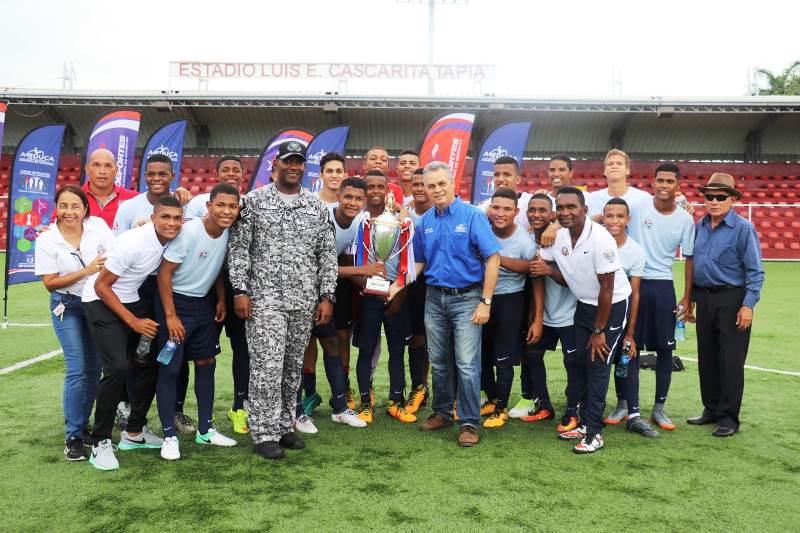 Los equipos de la sub15 y sub18 se disputaron el tercer y cuarto lugar de la IV versión de la Liga Intercolegial Copa Presidente de República 2018 que se llevó a cabo en el estadio Luis Ernesto “Cascarita” Tapia en el corregimiento de Juan Díaz. En la categoría Sub-15, el estudiante Samuel Jiménez del I.P. T. San Miguelito fue el jugador que le dio la victoria a su equipo, anotando dos goles ante el C.E.M. El Progreso de la provincia de Chiriquí. En tanto la categoría Sub-18 el Instituto Benigno Jiménez Garay de la provincia de Colón cayó 1 por 0 ante el Instituto Comercial Panamá. Al finalizar el partido se hizo entrega de reconocimientos y trofeos por parte del funcionarios de Pandeportes, Meduca, Policía Nacional, a los jugadores que ocuparon el tercer y cuarto de la Copa Presidente 2018. Este torneo tiene como objetivo inculcar a los jóvenes los valores como la disciplina, el respeto y el trabajo en equipo. |