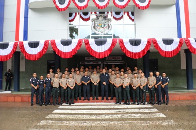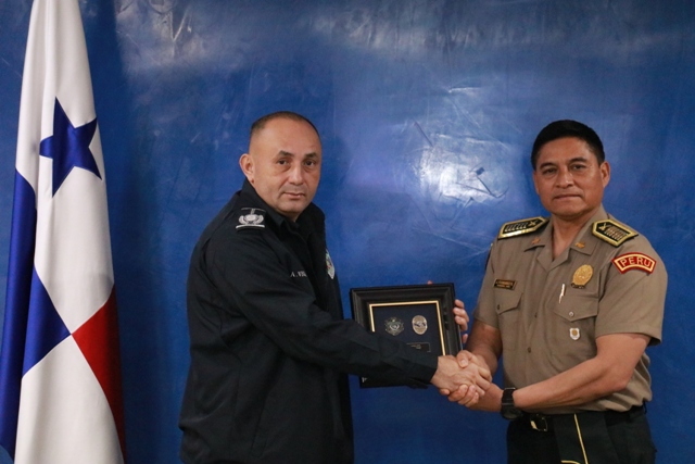 El Director General de la Policía Nacional Alonso Vega Pino, el Subdirector General, Jacinto Gómez acompañados por miembros del Directorio Policial, recibieron al Director de la Escuela de Oficiales Mariano Santos Mateos de la hermana República de Perú junto a una delegación de 30 estudiantes y tres oficiales. “Más que una delegación estamos recibiendo a nuestros hermanos policías, hay una trayectoria histórica referente a la relación cultural académica en materia policial entre ambos países, es un honor tenerlos aquí” destacó el jefe policial, Alonso Vega Pino. La delegación peruana estará visitando algunos sitios arqueológicos, monumentos históricos e igualmente se les dará charlas sobre Seguridad Ciudadana e historia de la Policía Nacional de Panamá. Esta visita tiene como objetivo fortalecer los lazos de amistad y trabajar de manera mancomunada y así contrarrestar los hechos delictivos en sus respectivos países. Por último, el Director General de la Policía Nacional entregó obsequios a los oficiales peruanos e igualmente lo hizo la delegación peruana.