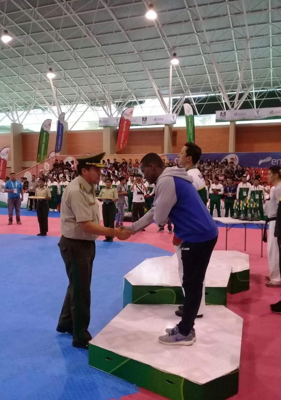 El agente Eduardo Arauz del Departamento de Deportes de la Policía Nacional, logró el tercer lugar en el “Primer Campeonato de Taekwondo Policial Presidente Evo Morales Ayma” que se desarrolló en Cochabamba Bolivia del 20 al 25 de noviembre de 2018. “Agradezco a Dios por la oportunidad brindada y la experiencia de compartir con unidades policiales de otros países que nos permite unificar lazos de amistad y traer gloria a suelo panameño en las 74 a 80 kilogramos” dijo el atleta Arauz. En esta actividad que tuvo lugar en el Complejo Deportivo de Bolivia, participaron unidades policiales de 7 países entre ellos: Argentina, Bolivia, Brasil. Colombia, Ecuador, Perú y Panamá. El atleta Eduardo Arauz junto a su entrenador Cabo 1ero Diógenes Rodríguez de la Unidad de Control de Multitudes, fueron recibidos por el Secretario General Ezequiel Carrizo, quien los exhortó a seguir adelante. También recibieron una placa de reconocimiento y la medalla de bronce.
