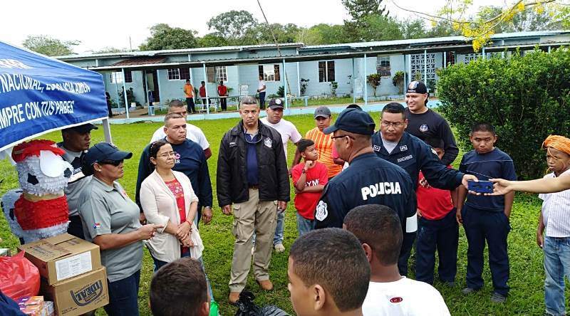 Una jornada de limpieza del área verde y mantenimiento en el Centro de Rehabilitación de Menores “Arturo Miró”, conocida también como la Granja de Menores, ubicada en el sector de Potrerillos, distrito de Dolega, realizaron unidades del Servicio de Policía de Menores de la 4ta. Zona Policial de Chiriquí. Además de mantener las áreas verdes limpias y evitar que sean criaderos de alimañas, se busca entre otras cosas, interactuar con los jóvenes que allí conviven; quienes en su mayoría están por riesgo social, para su rehabilitación y que vean a los miembros de la Policía Nacional como sus amigos. Estos menores, tienen entre 10 y 15 años y provienen de diferentes provincias. Actualmente unos 50 niños comparten este albergue. La Policía Nacional por realizar esta buena acción en beneficio de la juventud. La licenciada Evidelia Martínez, directora del Centro de Rehabilitación de Menores, felicitó a la Policía Nacional en especial al Servicio de Niñez y Adolescencia por interactuar con los jóvenes en riesgo social.