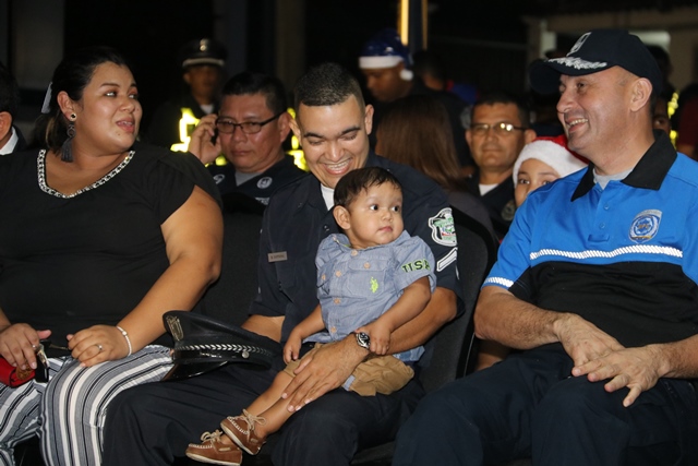 “Más que físicamente un árbol, lo importante es encender la luz del espíritu dentro de cada uno de nosotros, porque en la Policía Nacional siempre damos lo mejor de nosotros en favor de la seguridad pública”, dijo el Director General de la Policía Nacional Alonso Vega Pino, en el marco del encendido de luces del arbolito de Navidad de la Policía Nacional. Sus palabras se dieron en medio de un acto protocolar realizado en la sede de Ancón, evento este que también contó con la presencia de miembros del Directorio Policial, oficiales, agentes, personal no juramentado e invitados especiales. El encendido de luces estuvo a cargo del Señor Director General quien estuvo acompañado del niño Rayham Espinoza Cano y sus padres, el Cabo 2do. Rodolfo Espinoza y su madre Mabdiel Cano. “Más allá de esta luz que a través de estas fiestas han de iluminar nuestras instalaciones deseo hacer un llamado a todos los miembros de este cuerpo policial para pedirles que encendamos también una luz de amor, fe y esperanza dentro de nuestros corazones”, agregó Vega Pino quien resaltó que el centro de estas celebraciones es el nacimiento de nuestro señor Jesucristo en un pesebre para identificarse con los más pobres del mundo. “Esa es la auténtica luz de Navidad que debemos mantener encendida siempre”, destacó el Director General de la Policía Nacional. |