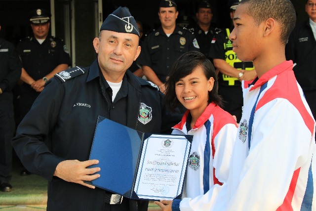 “Felicito a las unidades de la Unidad Preventiva Comunitaria y a los dos jóvenes por su excelente desempeño durante su participación en el Torneo Internacional de Tang Soo Doo que se llevó a cabo en Chile” destacó el Director General de la Policía Nacional, Alonso Vega Pino durante acto cívico donde resaltó la labor que por seis años ha llevado adelante la UPC. Hoy celebrando el VI aniversario de la UPC, el Director General de la Policía Nacional entregó reconocimientos a los jóvenes Sharol Castillo y Jeremy De León, quienes pertenecen al primer programa de artes marciales a cargo del capitán Royván Rudas. Al capitán Rudas de la UPC recibió una medalla “Honor al Mérito” por su labor al servicio de la comunidad y de los jóvenes. El jefe policial agradeció a las unidades policiales y miembros no juramentados por su trabajo durante las efemérides patrias y en el operativo de seguridad y seguridad vial que se le brindó al Presidente de la República Popular China, Xi Jinping, el 2 y 3 de diciembre. El acto cívico se llevó a cabo en las instalaciones de la Policía Nacional en el corregimiento de Ancón, en este el Director General de la Policía Nacional en compañía de miembros del directorio, colocaron ofrendas florales al monumento de las unidades caídas en cumplimiento del deber.