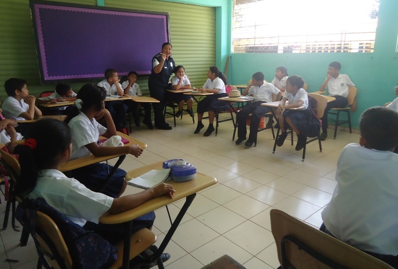 Unidades de la Policía Nacional de servicio de Policía de Niñez y Adolescencia de la 4ta. Zona Policial de Chiriquí concluyó, con el mejor de los éxitos, las capacitaciones de los programas de Desarrollo Humano, en planteles educativos de primaria y secundaria, públicos y privados. Aproximadamente 5 mil 60 estudiantes fueron beneficiados con las exposiciones que brindan las unidades pertenecientes a ese servicio. Mil 916 obtuvieron sus certificados de culminación del curso D.A.R.E., cuyas siglas significan Educación para la Resistencia al Abuso de Drogas y Violencia. El objetivo principal del mismo es eliminar o retardar el consumo de tabaco, alcohol o cualquier otro tipo de drogas. En tanto, 2 mil 715 educandos adquirieron los conocimientos del curso de Educación y Entrenamiento en Resistencia a las Pandillas (GREAT). Por su parte, 181 recibieron charlas sobre Niños y Niñas Seguras, y 242 sobre PIDRO. Los uniformados dialogan con los estudiantes sobre la importancia que tienen los diferentes temas de los manuales utilizados para que sepan tomar buenas decisiones, comunicarse claramente, controlar la ira, respetar al prójimo y ser un buen ciudadano. Además, se les habla acerca de las pandillas, como responder a la presión de grupos, al acoso escolar, el papel que desempeñan como estudiantes en las escuelas y en la comunidad. |