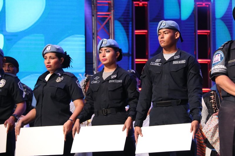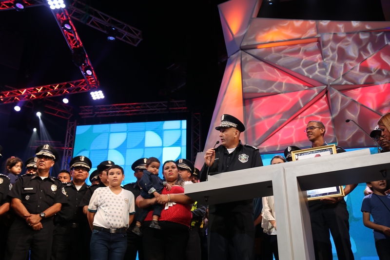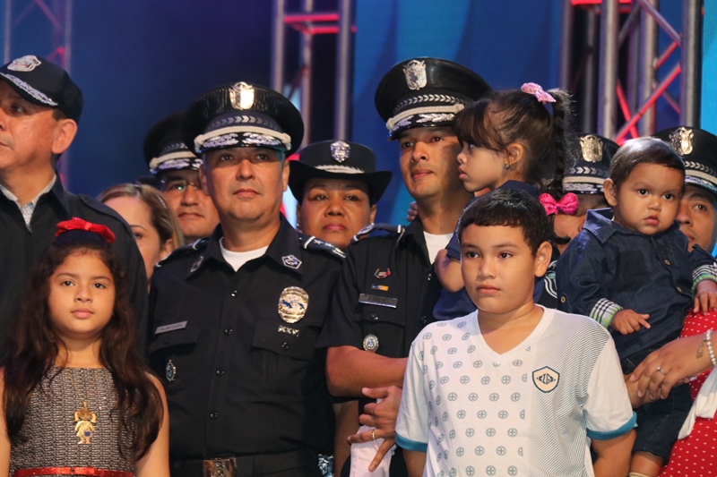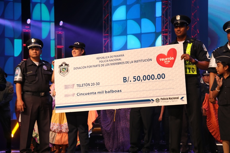 Panamá 15 de diciembre 2018. “Como familia policial escuchamos nuestro corazón y nos sentimos orgullosos de ser patrocinadores de la Teletón 20-30 solidaria expresión de hermandad y solidaridad.” dijo el Director General de la Policía Nacional Alonso Vega Pino durante la presentación de la institución en la Teletón 20-30. La niña símbolo de la Teletón 20-030 Mayuri Lisbeth Moreno acompaño a la delegación conformada por Oficiales y clases de la Policía Nacional para la entrega de la donación por la suma de 50 mil dólares, a la Teletón 20-30 2018. Brindamos al público un show donde el teatro, el baile folclórico, la música y el expresión fueron combinadas para enviar a través de ella, un mensaje preventivo a la ciudadanía, mostrando como trabaja la Policía Nacional para brindar oportunidades a los niños y jóvenes en riego social. La delegación estaba conformada por estudiantes del Instituto Superior Policial, Escuela de Oficiales de Panamá Dr. Justo Arosemena, uniformados de diversos servicios policiales y miembros de la banda de música. El Director de la Institución Alonso Vega Pino recibió por parte del presidente del Club Activo 20-30 Carlos Tarragó un reconocimiento por ser patrocinadores de esta Teletón por 16 años consecutivos. Como institución nos sumamos a los esfuerzos de esta noble causa, contribuyendo a mejorar la calidad de vida de los niños y jóvenes del país, que este año tiene como proyectos metas la remodelación y equipamiento de la fundación Pro Integración y la construcción del primer centro de innovación educativa 20-30. |