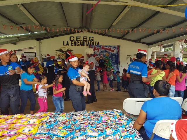 Como parte de nuestro compromiso de compartir con los que menos tienen, el fin de semana cadetes de la Escuela de Oficiales de Policía (ESOPOL) llevaron alegría, regalos y muchas sorpresas a los niños y niñas del sector de Cuipo, Santa Rita Arriba y de las Aldeas SOS en Puerto Escondido, provincia de Colón. El domingo pasado los cadetes de segundo año de la ESOPOL compartieron con niños y niñas de Cuipo en una fiesta de Navidad que se llevó a cabo en el Centro Escolar Básico General "La Encantadita". En tanto, los Cadetes de 1er año realizaron una labor social en el Hogar "Jesús y María" ubicado en Santa Rita Arriba, consistente en limpieza de las áreas verdes y compartiendo con los niños de la comunidad. Igualmente lo hicieron los cadetes de 3er año en las Aldeas SOS en Puerto Escondido, donde remodelaron la casa hogar que se quemó hace meses y no había sido reacondicionada, así como mantenimiento general y una fiesta para los niños. |