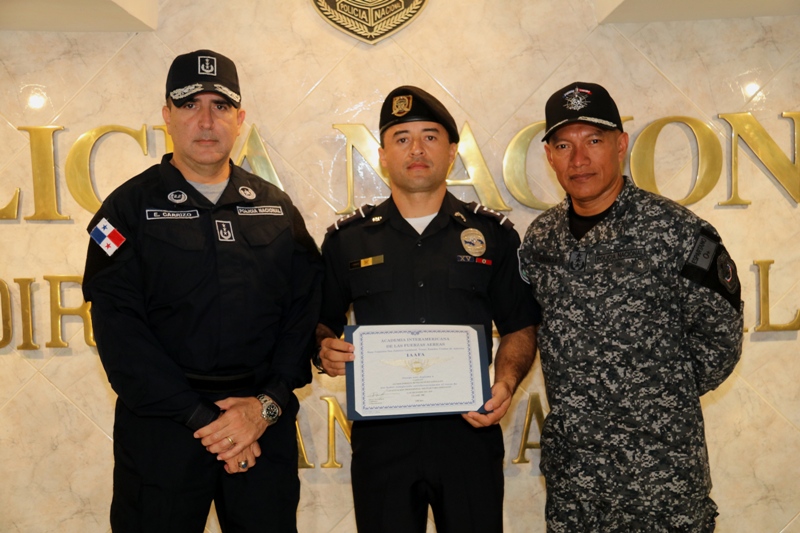 Unidades de la Policía Nacional se capacitaron por espacio de 70 días sobre la ley y disciplina en las operaciones de seguridad, en la Academia Interamericana de las Fuerzas Aéreas, base conjunta San Antonio, Texas Estados Unidos de América. Los oficiales capitán Javier Betancourt, de la Dirección Nacional de los Servicios Policiales Especiales (DINASPE) y el capitán Iván Alexis Ortega Pérez, de la Dirección Nacional de Operaciones (DINOP), fueron recibidos en el despacho del Secretario General de la Policía Nacional, Ezequiel Carrizo. Para el capitán Javier Betancourt de DINASPE esta capacitación orienta a los oficiales en el proceso de liderar grupos y trabajar en base al funcionamiento orgánico de una Institución, de igual forma contar con mejores elementos para desarrollar nuestra labor en beneficio de la comunidad. En estos cursos de capacitación participaron Chile, Costa Rica, Panamá, República Dominicana, Colombia, Uruguay, Estados Unidos, y Honduras. |