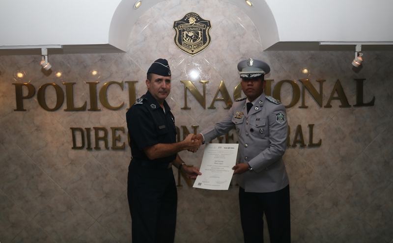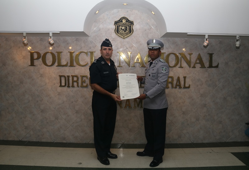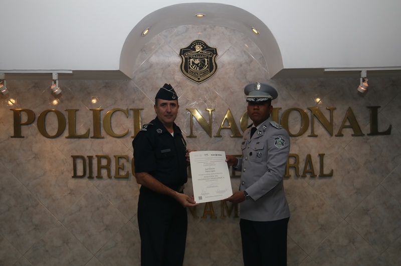 La Dirección General de Formación y Profesionalización de México otorgó diploma al mayor Joel A. Pérez López, por haber acreditado satisfactoriamente la maestría en Seguridad Hemisférica, durante un año.. El Mayor Pérez logra pertenecer a la segunda generación Máster en Seguridad Hemisférica con especialización en políticas de Seguridad Pública y el segundo policía de Panamá en estudiar esta. Como profesional uniformado expresó sentirse capaz de incorporarse al equipo que en Panamá se encarga de diseñar y evaluar las Políticas de Seguridad Pública, acordes a nuestra realidad nacional e institucional. Así mismo, considera que Panamá posee una operatividad bastante completa y eficiente que debe sumar estrategias para combatir amenazas actuales o que emergen de manera vertiginosa. |
