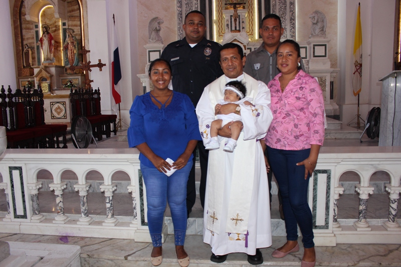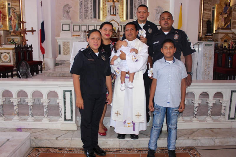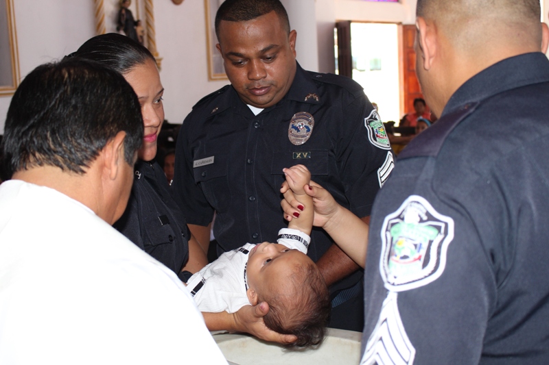 En una ceremonia religiosa en la iglesia San Juan Bautista en Penonomé, hijos de unidades de la 2da Zona Policial, recibieron el sacramento del Bautismo. La actividad dio inicio con la eucaristía ofrecida por el sacerdote y capellán de la Zona Edilberto Ortiz, quien se dirigió a los presentes con predicas y testimonios del bautismo, realizando este acto. "Una persona ungida con agua, simboliza y purifica su vida religiosa" dijo. Posteriormente los presentes fueron testigos de la ceremonia, iniciando con la unción con el crisma, la imposición de la vestidura blanca y la entrega del cirio, donde los infantes, padres y padrinos compartieron la bienvenida a la comunidad cristiana. Esta actividad organizada por el departamento de Trabajo Social de la Zona, se realiza con la finalidad de fortalecer los lazos familiares de la familia uniformada.