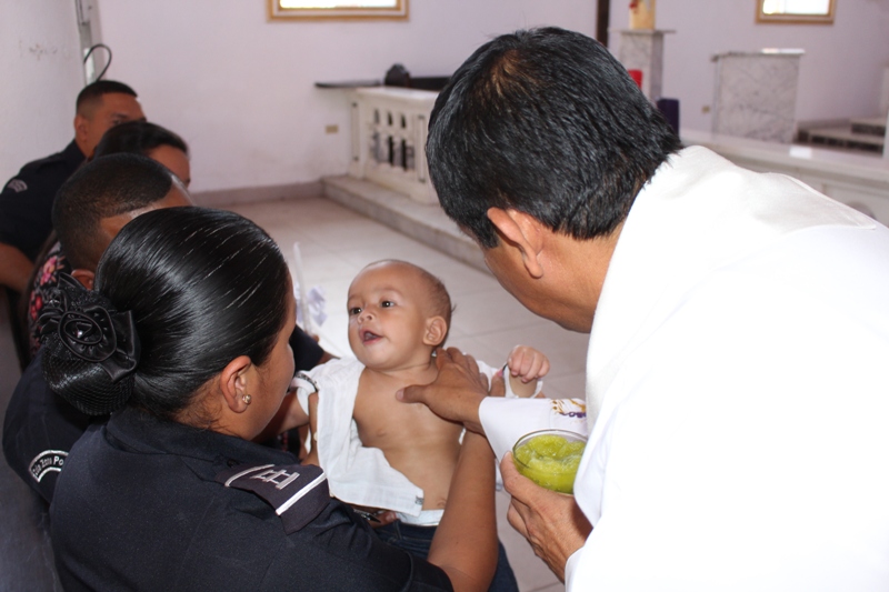 CON REGOCIJO RECIBIERON EL SACRAMENTO DEL BAUTISMO HIJOS DE UNIDADES POLICIALES