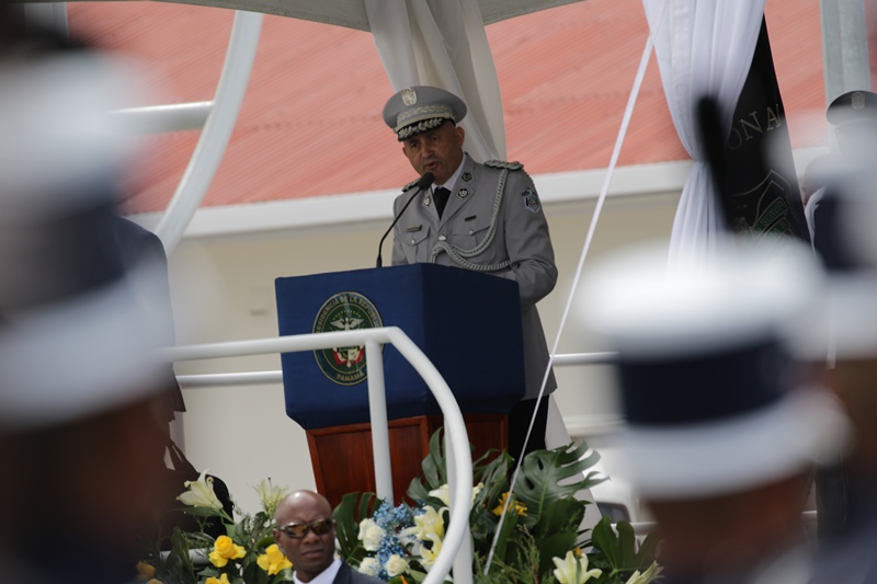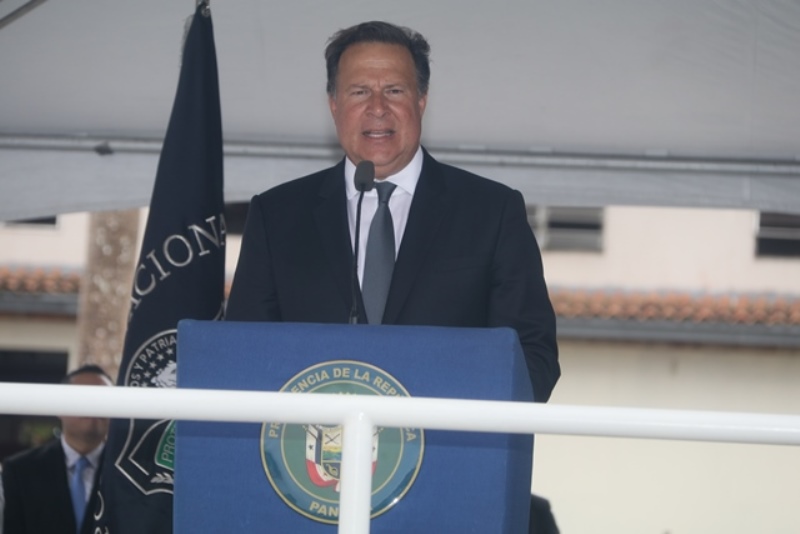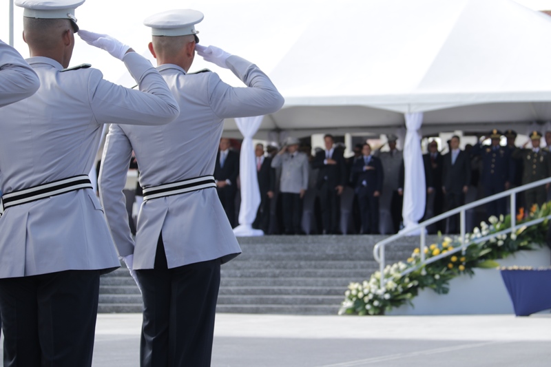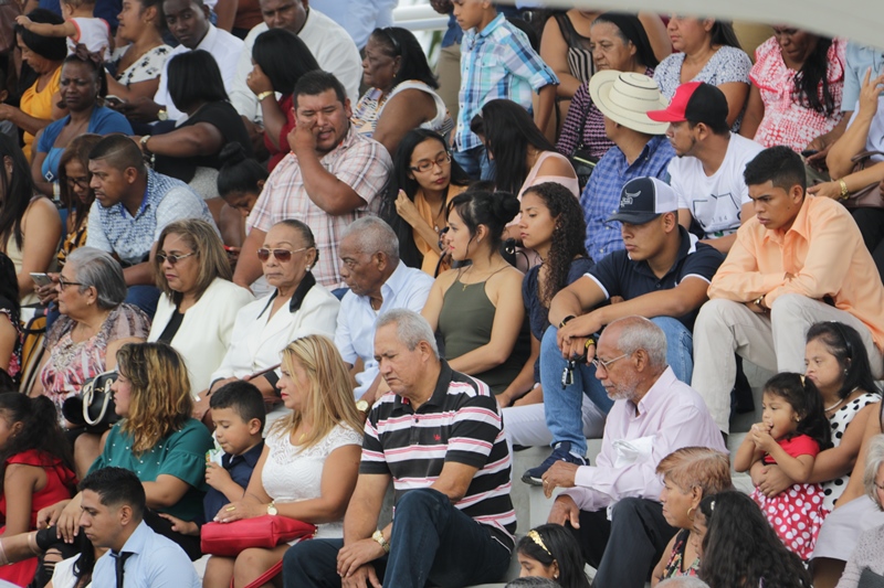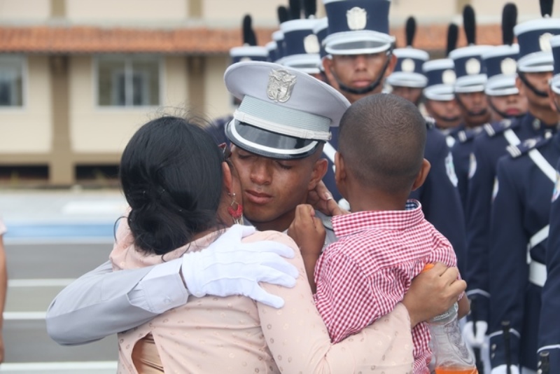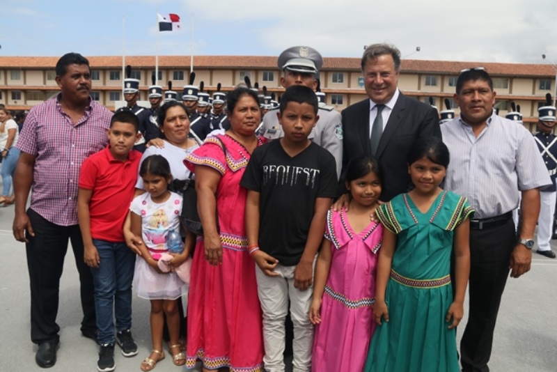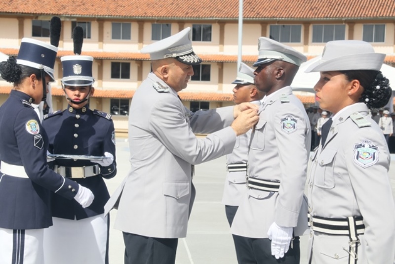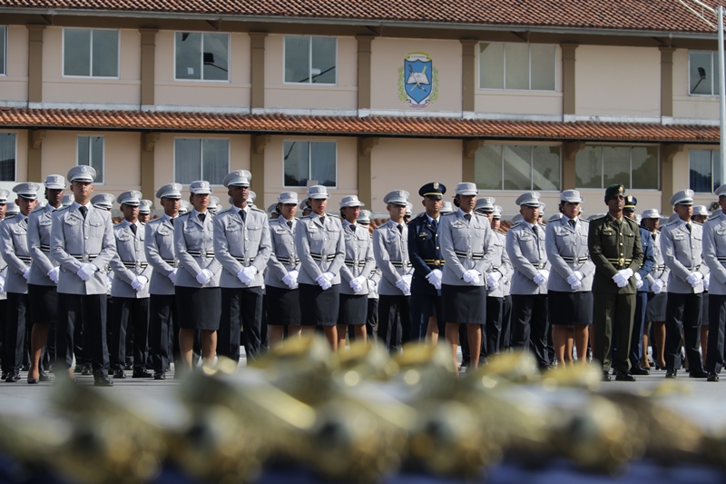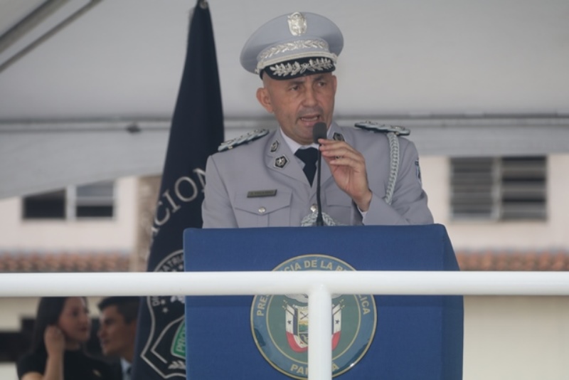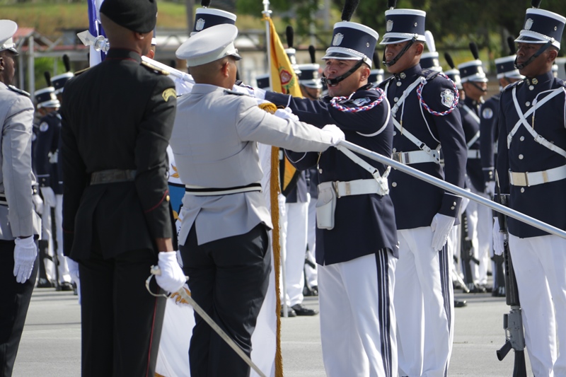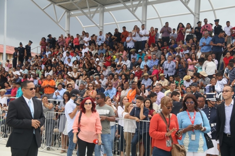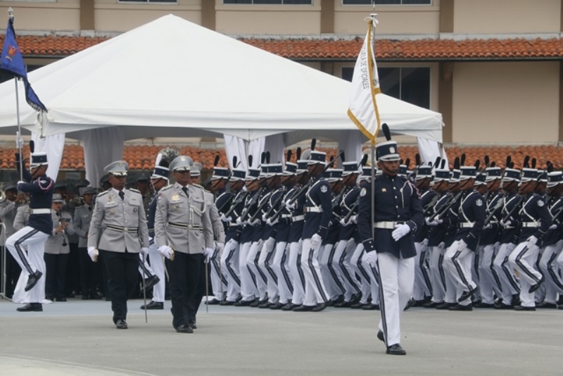 Panamá, 7 de enero de 2019. “Me siento orgulloso por la disciplina de los 143 nuevos oficiales con los que cuenta el país, la defensa a la Patria se realiza día a día, permanezcan leales a su institución y al Estado” dijo el Mandatario de la República Juan Carlos Varela durante acto de graduación de subtenientes de la Promoción XVIII que lleva por nombre “general Tomás Herrera” de la Escuela de Oficiales de Policía Dr. Justo Arosemena. Los nuevos subtenientes recibieron de manos del Presidente de la República el sable que simboliza el mando, honor, valentía y convección y compromiso con la Patria. “La defensa de la Patria se realiza cada día, cuando entregamos lo mejor de nosotros en nuestro trabajo, cuando salvamos una vida. Estimados graduados: permanezcan leales a su institución y al Estado, la Patria se los agradecerá” destacó el Presidente Varela. En tanto, el Ministro de Seguridad Pública, Jonattan Del Rosario agradeció a las unidades de la Fuerza Pública la labor que llevan a cabo día a día e instó a los nuevos oficiales a continuar con la vocación de servicio, teniendo siempre presente los valores inculcados en este centro de enseñanza. Los tres primeros puestos de la promoción XVIII, los subtenientes Raúl Caicedo, Ricardo Fabris y a Nicole González recibieron por parte Director General Alonso Vega Pino la imposición de la Medalla de Condecoración Dr. Justo Arosemena. “Esta promoción es el producto de una suma de saberes que integran su perfil profesional, donde lo técnico se añade a lo tecnológico y científico”recalcó el director policial. La décimo octava promoción está conformada por 4 unidades del Servicio de Protección Institucional, 2 del Servicio Nacional Aeronaval, 1 del Servicio Nacional de Fronteras y 5 peruanos. Se unieron a los subtenientes panameños, 16 oficiales graduados en el extranjero; 2 de Uruguay, 4 de Chile, 4 de Argentina, 1 de Colombia, 2 de Paraguay y 3 de Perú. El acto contó con la presencia de ministros de Estado, autoridades de la provincia de Colón, Agregados Militares y Navales, miembros del Directorio Policial, directores de los demás estamentos de seguridad e invitados especiales.