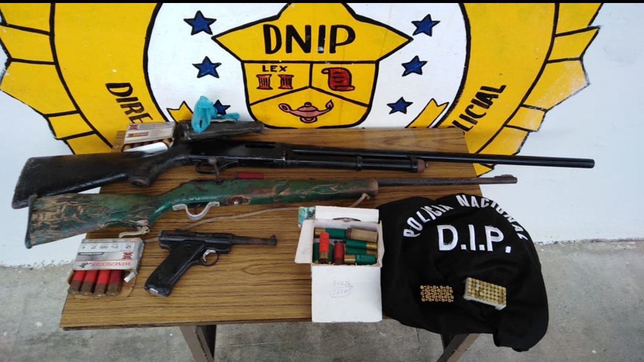 Esta tarde, unidades de servicio en la Subdirección de Inteligencia Policial (DIP) de la 1ra. Zona Policial de Bocas del Toro, realizaron una diligencia de allanamiento en coordinación con funcionarios del Ministerios Publico de la provincia de Bocas del Toro, en una residencia ubicada en un área de la Comunidad de Almirante donde se logra encontrar varias armas de fuego y municiones las cuales no cuentan con permisos por parte de las autoridades. En esta diligencia se logró decomisar: 1- Una Pistola calibre 22 de color negro, un proveedor y mantiene 7 municiones sin detonar. 2- Un cartucho de color rojo de escopeta calibre 12. 3- Dos (2) cajitas con 50 municiones calibre 22, dando un total de 100 municiones. 4- Un arma de fuego tipo rifle calibre 22 sin Permiso, sin marca ni serie visible. 5- Un arma de fuego tipo escopeta calibre 12 sin permiso, sin marca ni serie visible. 6- Cuatro cajitas de cartón con 31 cartuchos sin detonar calibre 12. En el lugar fue aprendido y conducido un ciudadano quien junto a los indicios decomisados será puesto bajo órdenes de un Juez de Garantías de la provincia de Bocas del Toro. |