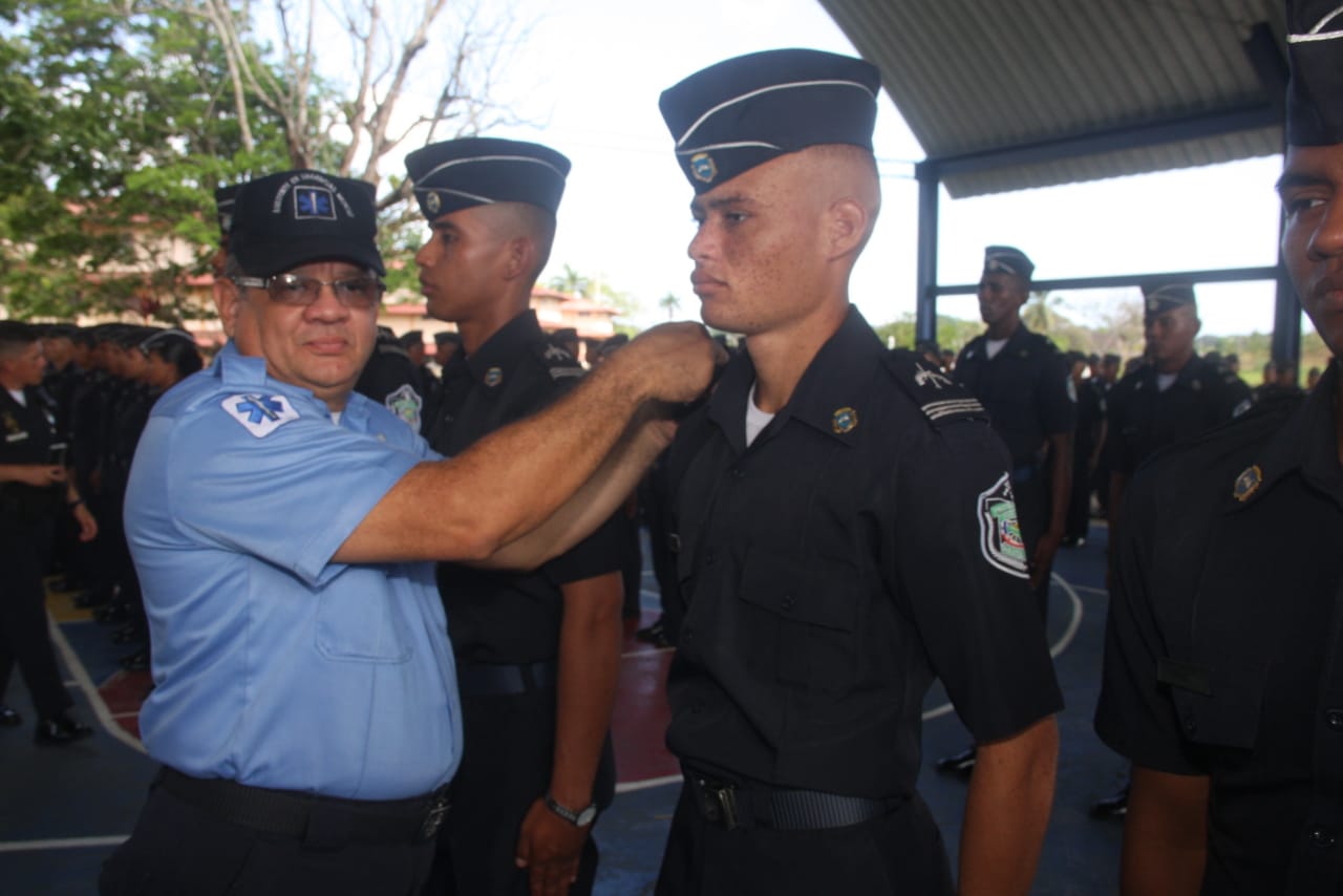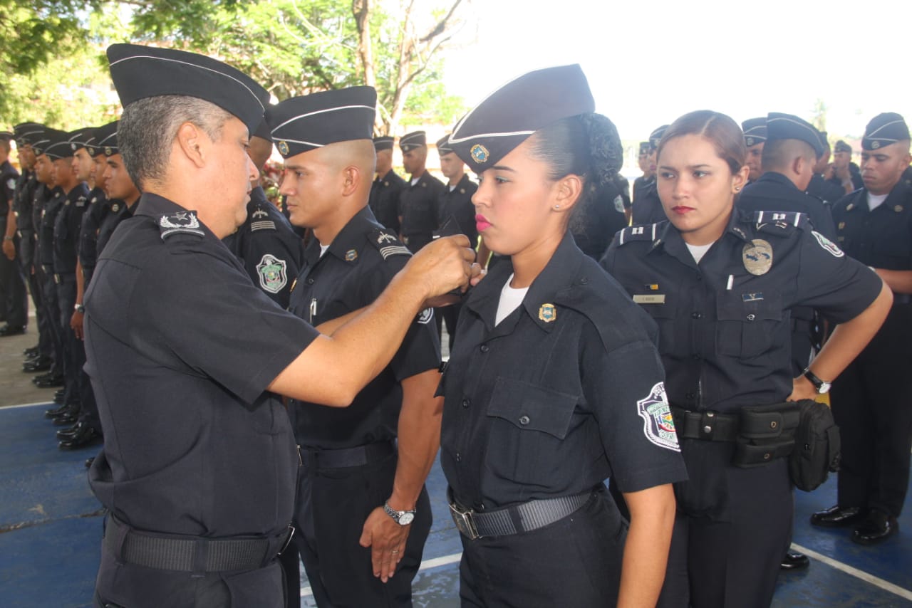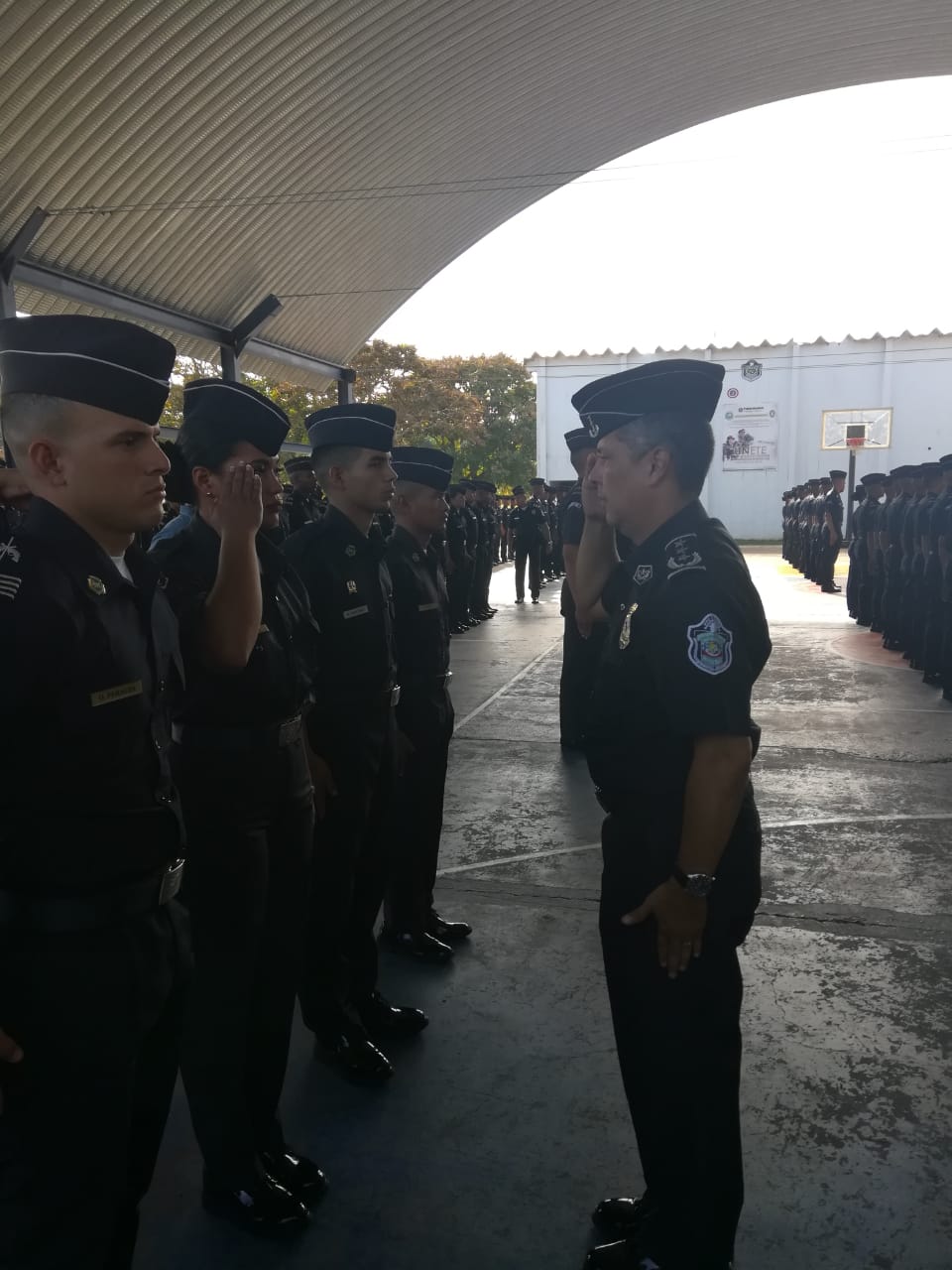 El Director Nacional de Docencia, Manuel De León junto al director de la Escuela de Oficiales de Policías Julio Wong presidieron la ceremonia de ascenso e imposición de jerarquía a estudiantes que han cumplido con el proceso académico. “Esta imposición significa el principio de una carrera policial y profesional que implica sacrificios pero también mucha satisfacción a la que están llamados a servir a la Patria los futuros oficiales de nuestro país” destacó el Director Nacional de Docencia, Manuel De León. El jefe de la Escuela de Oficiales de Policías subcomisionado Julio Wong, indicó que quienes recibieron las caponas fueron estudiantes de las promociones 19, 20 y 21 que han pasado de un nivel a otro cumpliendo todos los requisitos académicos que exige la Escuela. Fue mucha la emoción para los cadetes recibir de mano de los oficiales las caponas que con mucho honor y sacrificio han obtenido.