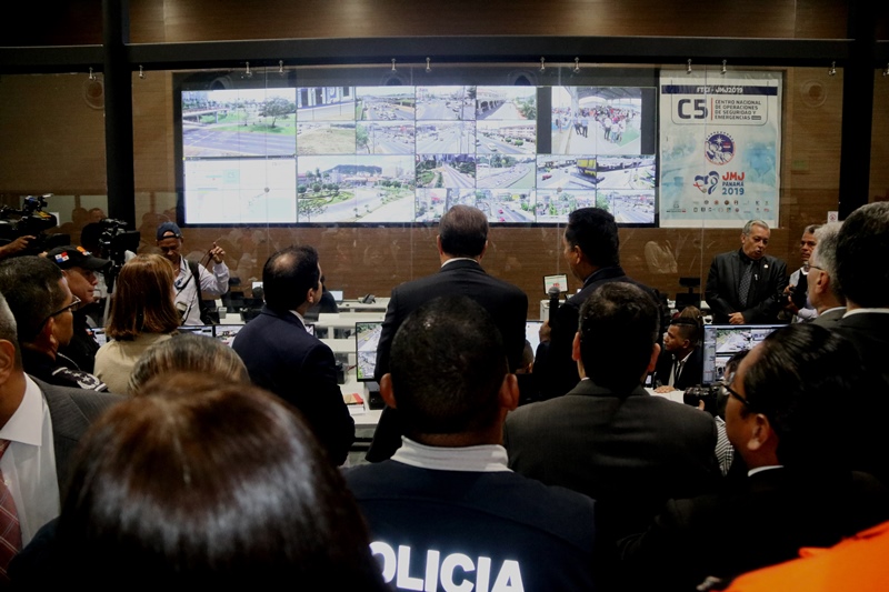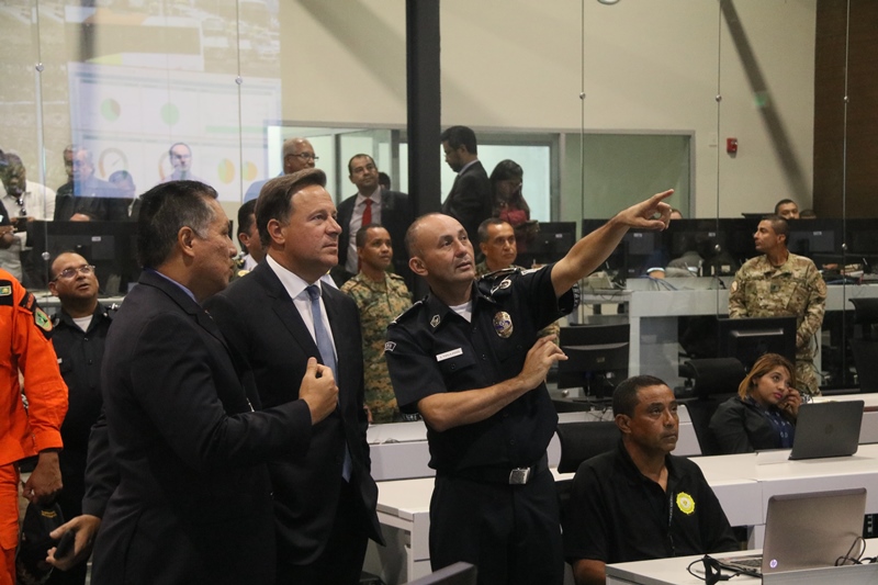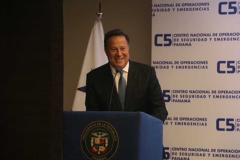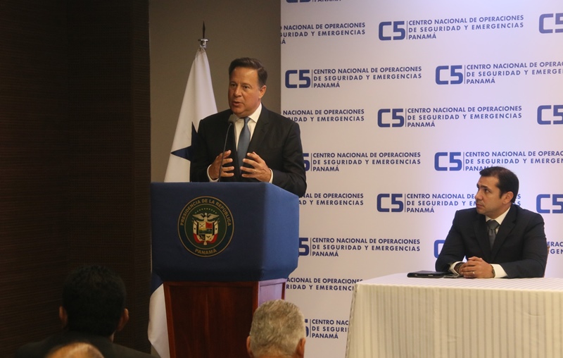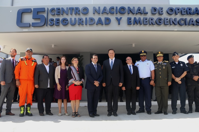 El presidente de la República, Juan Carlos Varela, en compañía del ministro de Seguridad Pública, Jonattan Del Rosario, inauguraron el Centro Nacional de Operaciones de Seguridad y Emergencia “C5”, que tendrá como objetivo principal garantizar la seguridad ciudadana y reducir el tiempo de respuesta de las autoridades en casos de emergencias. El presidente Varela informó, que esta moderna instalación será la casa de la Fuerza de Tarea Conjunta Ayuda, la cual fue creada en 2015 con base en un concepto de operaciones interagencial, que agrupa a las instituciones del Estado panameño, para maximizar la presencia de las autoridades a fin de proteger a la población a lo largo y ancho de la población nacional. El mandatario, quien reconoció la labor del Ministerio de Seguridad Pública (Minseg), estamentos de seguridad y la Autoridad de Innovación Gubernamental, señaló que con la entrada en operaciones del “C5”, Panamá puede afirmar que “estamos mejor preparados que nunca para garantizar la seguridad de la Jornada Mundial de la Juventud, el Operativo de Verano Seguro, los Carnavales, Semana Santa y las elecciones generales de mayo de 2019. En su intervención el titular de Seguridad Pública, Jonattan Del Rosario, destacó que el Gobierno del presidente Varela ha logrado la mayor disminución de los homicidios dolosos en la historia del país, alcanzando cifras récord de incautación de drogas, personas aprehendidas, pandillas judicializadas y redes de trata y tráfico de personas desmanteladas en Panamá. “Desde la sala de Comando y Control del C5 que estamos inaugurando hoy y los Centros de Comando Móvil de la Policía Nacional “Pantera y Jaguar” que ya fueron presentados al país, la fuerza pública y el conjunto de entidades de respuesta a emergencias que formamos parte de la Fuerza de Tarea Ayuda, no solo tenemos acceso a los sensores de campo y centros de monitoreo existentes en Panamá, Colón Chiriquí y Darién, que ya están interconectados al C5, sino que además, contamos con la capacidad de poder integrar todas las cámaras que se instalen a futuro a nivel nacional”, indicó el Ministro. “Me siento contento de contar uno de los mejores Centros de Operaciones como lo es el C5, con esta nueva estructura centralizamos y fortalecemos la Fuerza de Tarea Ayuda”. Indicó el Director General de la Policía Nacional Alonso Vega Pino, indico que Para concretar el proceso de formulación y aprobación de este proyecto, desde noviembre de 2016 se realizaron misiones oficiales a los principales centros de operaciones de países como: Estados Unidos, Canadá, China, el Reino Unido y México, donde hubo reuniones con los estamentos de seguridad de cada país, para conocer las ventajas y lecciones aprendidas en la aplicación de este tipo de sistemas. El “C5”, que tuvo un costo total de 27.5 millones de dólares e incluye la plataforma tecnológica, tres años de mantenimiento y la sede central, significa “Comando, Control, Cómputo, Comunicaciones y Calidad”, el cual estará integrado por enlaces de los cuatro estamentos de seguridad y las agencias de respuesta a emergencias del Estado, que forman parte de la Fuerza de Tarea Conjunta (FTC). Esto incluirá un conjunto de sistemas computarizados de recepción, atención y despacho de llamadas de emergencias con georeferencia en las unidades de la Policía Nacional, torres de videovigilancia de alta definición, botones de pánico, herramientas de colaboración ciudadana y análisis de video. El concepto del “C5” se basa en el Centro de Operaciones de Puebla, México, que brindó cooperación técnica al Ministerio de Minseg durante el estudio diagnóstico del proyecto. El proceso culminó exitosamente con la selección de la Corporación Canadiense Comercial (CCC), empresa pública 100% del Gobierno de Canadá como contratista responsable de proporcionar e integrar todos los componentes de tecnología del proyecto C5, Fase 1. El 8 de noviembre de 2017 el Minseg y el vicepresidente de Corporación Canadiense Comercial, Andrew Shisko, suscribieron el Contrato de Tecnología, Fase 1 para el establecimiento del “C5”. El contrato está respaldado por un convenio marco de cooperación entre Panamá y Canadá, aprobado mediante la Ley 14 de 2017, a fin de fortalecer las capacidades institucionales del Estado panameño, para la adquisición de bienes y servicios de seguridad y defensa, cumpliendo con los más altos estándares de transparencia y calidad. Con esta tecnología, que estará integrada con las cámaras de videovigilancia de la Alcaldía de Panamá, el C2 de Colón y otras cámaras en el país, se medirá la calidad de respuesta de la Policía Nacional en tiempo real, gracias a los sensores integrados a las patrullas que serán monitoreadas y evaluará el tiempo que tardan en llegar al lugar de los hechos. Además, reducirá los tiempos de respuesta y evaluará los procedimientos policiales que ejecuten los uniformados. Este proyecto de seguridad se inaugura días previo a la visita del papa Francisco, en ocasión a la Jornada Mundial de la Juventud, en donde se pondrá a prueba la efectividad de la tecnología y los estamentos de seguridad tendrán la responsabilidad de cuidar a más de 100 mil peregrinos.