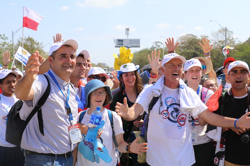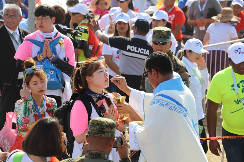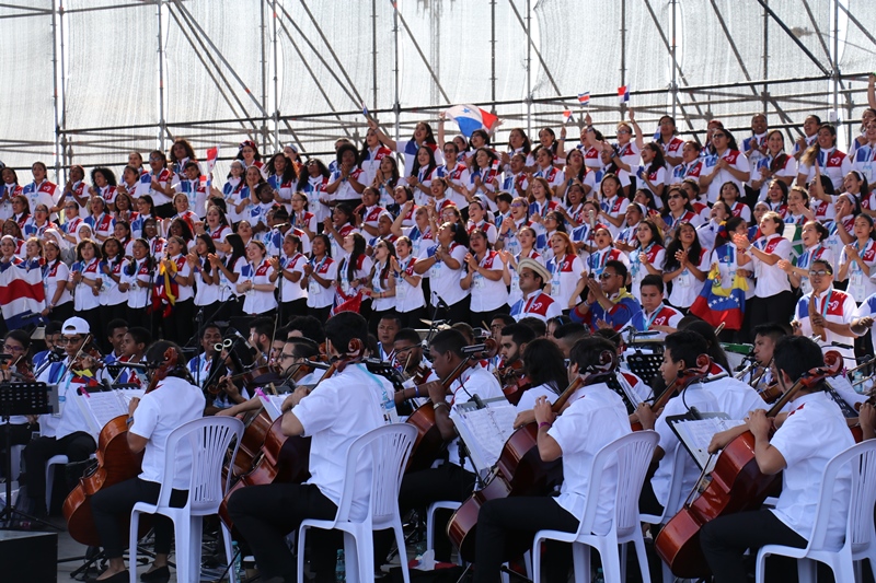 Su Santidad el papa Francisco invitó a los miles de peregrinos reunidos esta noche del sábado en la vigilia de la Jornada Mundial de la Juventud (JMJ) a no tener miedo de abrirle el corazón a Jesús y a permitir que renueve el fuego de su amor, que los impulse a abrazar la vida con toda su fragilidad y pequeñez, pero también con toda su grandeza y hermosura. Que los ayude a descubrir la belleza de estar vivos. “Dentro de un momento nos encontraremos con Jesús vivo en la eucaristía. Seguro que tendrán muchas cosas que decirle, contarle sobre distintas situaciones de sus vidas, de sus familias y de sus países. Estando frente a Él, cara a cara, no tengan miedo de decirle que ustedes también quieren tomar parte en su historia de amor en el mundo, ¡que están para más!”. Miles de peregrinos provenientes de al menos 150 países del mundo se encuentran reunidos en el Campo Juan Pablo II de Metro Park para participar en la vigilia de JMJ, dirigida por su Santidad el Papa Francisco, en la que participan el presidente de la República, Juan Carlos Varela; la primera dama Lorena Castillo de Varela y la vicepresidenta y canciller Isabel De Saint Malo de Alvarado. Una vez más, el vicario de Cristo demostró su conexión con los jóvenes al hablarles en su lenguaje, al hablarles de una historia de amor que Jesús regala, “una historia de vida que quiere mezclarse con la nuestra y echar raíces en la tierra de cada uno. Esa vida no es una salvación colgada “en la nube” esperando ser descargada, ni una “aplicación” nueva a descubrir o un ejercicio mental fruto de técnicas de autosuperación. Tampoco un “tutorial” con el que aprender la última novedad”. El santo Padre aseguró a los peregrinos que la salvación que el Señor regala es una invitación a ser parte de una historia de amor que se entreteje con nuestras historias; que vive y quiere nacer entre nosotros para que demos fruto allí donde estemos, como estemos y con quien estemos. Allí viene el Señor a plantar y a plantarse; es el primero en decir “sí” a nuestra vida, a nuestra historia, y quiere que también digamos “sí” junto a Él. Asimismo, los instó que en ese cara a cara con Jesús “le pidan por mí para que yo tampoco tenga miedo de abrazar la vida, cuide las raíces y diga como María: ¡Hágase según tu palabra!” Durante su mensaje los miles de alegres peregrinos interrumpieron una y otra vez al Santo Padre para gritar “esta es la juventud del Papa”, “Viva el papa”, “Viva Cristo” y le dedicaban aplausos y el ondear de las diversas banderas presentes en el Campo Juan Pablo II. Los peregrinos se mantendrán en vigilia durante toda la noche y mañana a, las 8:00 a.m., participarán en la misa de cierre de la JMJ, en la que se prevé que los presidentes de Costa Rica, Colombia, Portugal, Guatemala, El Salvador y Honduras acompañen al Gobernante panameño. |