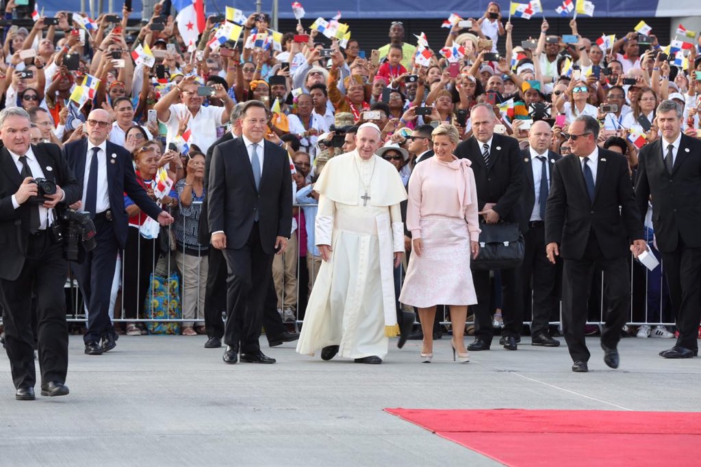 El presidente de la República, Juan Carlos Varela, despidió en la terminal 2 del Aeropuerto Internacional de Tocumen, a su Santidad el papa Francisco, quien realizó una visita oficial a Panamá, que inició el miércoles 23 de enero para encabezar la Jornada Mundial de la Juventud (JMJ) y que concluyó este domingo. El Mandatario dijo dar gracias a Dios y al papa Francisco por esta bendición de haber sido sede de la JMJ y sobretodo felicitar al pueblo panameño porque demostró su gran corazón a todo el mundo y las cosas grandes que puede hacer cuando estamos todos unidos. También felicitó a los estamentos de la Fuerza Pública que participaron es los diferentes operativos con la visita de su Santidad el Papa a Panamá; además agradeció a todas las familias de acogida que dispusieron de sus hogares y de tiempo para atender a miles de peregrinos que asistieron a esta jornada. El Mandatario describió los últimos minutos que convivió con el papa Francisco previo a su partida hacia el Vaticano y señaló que el jerarca de la Iglesia católica ve a Panamá como una nación con mucha responsabilidad ante el mundo por su posición geográfica, el Canal y que ésta va más allá de las fronteras. “Fue un momento de unidad de todo el pueblo y así debemos continuar con este ambiente que deja el papa Francisco y hacer a un lado las diferencias que impidan seguir trabajando para seguir adelante con este hermoso país”, agregó. También destacó una JMJ regional que dio oportunidad a jóvenes de países vecinos trabajar junto a Panamá para sembrar en este sector del mundo una semilla de esperanza ante retos principalmente en busca de paz. Para el presidente Varela, las palabras de Dios que trajo el papa Francisco a esta jornada fueron impactantes, sin embargo, a él le impactó la impartida en el Centro de Cumplimiento de Menores, donde el Santo Padre habló a estos jóvenes que han cometido un error en sus vidas y animó a ver un horizonte, un futuro donde la “polilla” no vuelva a corromper sus vidas. Finalmente, concluyó que la JMJ fue un evento de país que deja como resultado miles de embajadores que alrededor del mundo que retornan a sus tierras, que se llevan el calor de este pueblo y podrán contar acerca de Panamá. El papa Francisco arribó a Panamá el miércoles 23 en un vuelo de Alitalia procedente de Roma y fue recibido con los honores correspondientes a un jefe de Estado por parte del mandatario Varela, la primera dama Lorena Castillo de Varela, la vicepresidenta y canciller Isabel De Saint Malo de Alvarado y los ministros de Estado. Tras la ceremonia de bienvenida y un representativo acto cultural, el papa Francisco protagonizó un recorrido en distintas áreas de la ciudad capital, donde compartió con los miles de panameños y con los extranjeros apostados a lo largo de la ruta establecida para su recorrido en el papamóvil. El jueves el Santo padre inició su agenda oficial con una visita a Palacio de las Garzas donde saludó a la familia presidencial. De allí se trasladó al Palacio Bolívar, sede de la Cancillería panameña, donde presidió el único acto de carácter oficial en su rol como jefe de Estado. Allí intervino y dijo a los presentes, entre los que se encontraban el presidente Varela, la Primera Dama, autoridades nacionales, Cuerpo Diplomático y representantes de la sociedad civil del país, que Panamá es una tierra de convocatoria y de sueños. También agradeció a todo el pueblo panameño el esfuerzo invalorable para acoger a tantos jóvenes provenientes de todas partes del mundo. “Gracias por abrirnos las puertas de la casa”, recalcó. Posteriormente, se reunió con los obispos centroamericanos en la Iglesia San Francisco de Asís. En la tarde del jueves, su Santidad tuvo su primer encuentro con los peregrinos en el campo Santa María la Antigua, ubicado en la Cinta Costera, donde ofició una misa e invitó a los jóvenes a ser constructores de puentes y no de muros y a amar de la misma manera que amó Jesús. “No tengan miedo, que vayan adelante con esa energía renovadora y esa inquietud constante que nos ayuda y moviliza a ser más alegres y disponibles, más testigos del evangelio”, les señaló. El viernes Francisco se reunió con jóvenes presos en el Centro de Cumplimiento de Menores de Las Garzas de Pacora y en la tarde hizo una vía crucis con los jóvenes en la cinta costera. El sábado 26 el Sumo Pontífice ofició una misa en la dedicó, consagró y bendijo el renovado altar de la Catedral Basílica Santa María la Antigua. Más tarde se reunió con los jóvenes que se preparan en el Seminario Mayor San José. En la tarde participó en una vigilia con los jóvenes peregrinos en el Campo San Juan Pablo II Metro Park. Esta mañana, su Santidad ofició la misa de cierre de la Jornada Mundial de la Juventud en el Metro Park, donde se anunció que la próxima sede del encuentro se realizará en el año 2022 en Portugal. Más tarde visitó la Casa Hogar del Buen Samaritano Juan Díaz, una fundación promovida por la Iglesia panameña para brindar asistencia a jóvenes y adultos que padecen VIH-SIDA. Posteriormente, se reunió con los miles de voluntarios, nacionales e internacionales, a quienes agradeció todo el trabajo realizado para la feliz realización de la JMJ. |