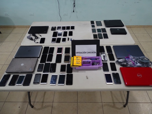 “Nuestras unidades de investigación de la mano de funcionarios del Ministerio Público se mantienen en constantes operativos en todo el territorio nacional para contrarrestar estas acciones delictivas y retener a estas personas que se dedican a hurtar y robar equipos electrónicos” destacó el Director General de la Policía Nacional, Alonso Vega Pino tras el desarrollo de la operación policial denominada “Cancheras”. La operación que tuvo un período de investigación de siete meses, permitió que unidades de la Policía Nacional en conjunto con funcionarios del Ministerio Público desarticular este grupo que se dedicaba a sustraer celulares y computadoras portátiles a sus víctimas, en la provincia de Chiriquí. La acción fue desarrollada por unidades de servicio en la Dirección de Investigación Judicial (DIJ) y la Dirección Nacional de Inteligencia Policial (DNIP), quienes realizaron diligencias operativas en sectores como Calidonia, Terraplén, El Chorrillo, Santa Ana y Juan Díaz e igualmente en el distrito de Boquete, provicnia de Chiriquí. Como resultado se obtuvo, la aprehensión de 15 personas, entre estos: panameños y extranjeros, más de 51 celulares recuperados, dinero en efectivo y demás evidencias. Entre los artículos hurtados, estaban teléfonos celulares de jóvenes peregrinos a quienes ya le fueron entregados. De acuerdo con las pesquisas, el grupo delictivo conformado por ciudadanos extranjeros y nacionales, residentes en la ciudad capital, asistían a diferentes eventos en Chiriquí con la intención de hurtar los teléfonos y pertenencias de las víctimas. La evidencia y los sospechosos fueron trasladados a Chiriquí, donde se continuará con las investigaciones que adelantan las autoridades judiciales contra estas personas. |