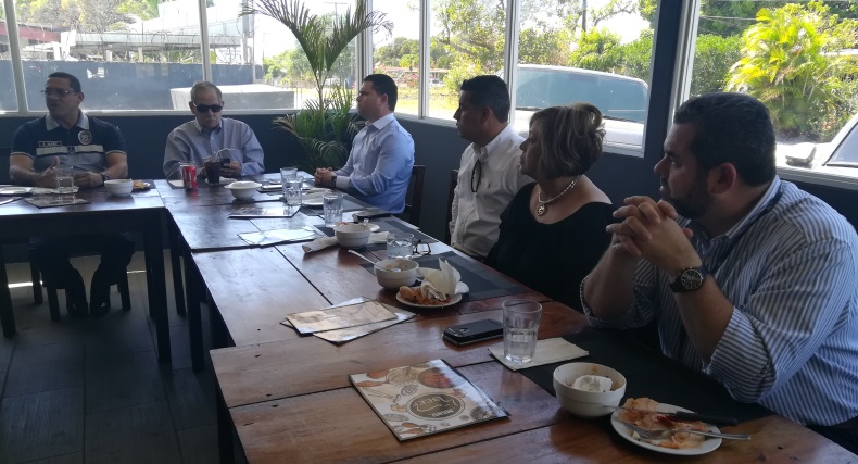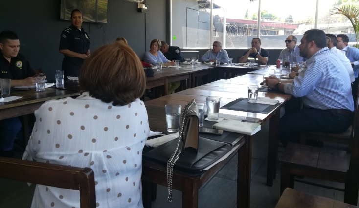 El Comisionado Sisinio Núñez Rodríguez, Jefe de la 4ta. Zona Policial de Chiriquí, se reunió recientemente, en un restaurante de la localidad, con el señor Erick Lezcano, presidente de la Asociación Bancaria del de David. En esta reunión se contó, además, con la presencia del Subcomisionado Ovidio Gil, Ejecutivo de esta Zona Policial; Mayor Teruo Alvia, encargado de la Subdirección Nacional de Investigación Judicial; el Mayor César Herrera, encargado de la Dirección Nacional de Inteligencia Policial; la Subteniente Wendy Aráuz, encargada del Servicio de Seguridad Ciudadana en la provincia, y representantes legales de los diferentes bancos, ubicados en el sector de David. De igual manera, las medidas que deben adoptar los clientes cuando manejan altas sumas de dinero y las estrategias de seguridad para los transportadores de valores. El Jefe de la Zona Policial de Chiriquí agradeció a todos los Gerentes y representantes de los diferentes bancos que participaron en esta reunión, por la búsqueda de intercambios de ideas de prevención y de docencia en este importante tema. |