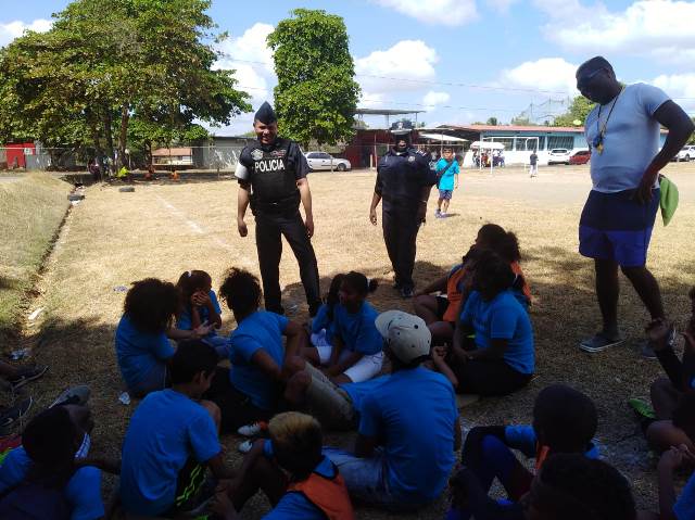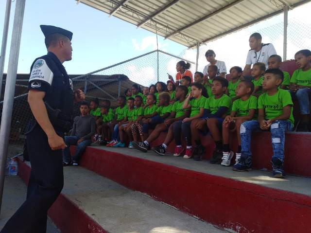 Unidades de la Policía Nacional que laboran en el Servicio de Seguridad Ciudadana de las áreas policiales, dan inicio a las diferentes actividades para celebrar el verano feliz 2019, con un torneo de Futbol Sub 11, denominado “Liga de Campeones” donde participan niños del corregimiento de Pedregal. Se les brinda orientación y charlas de valores a los niños que participan de estas actividades recalcando la unión entre la comunidad y Policía Nacional. Igualmente los enlaces de Seguridad Ciudadana y de la Policía de Niñez y Adolescencia, de la 15va Zona Policial, se unen para para participar con más de 200 niños del Verano Feliz 2019 en otros sectores. Dando orientación en cuanto a la seguridad en su entorno y charlas de valores con la intención de crear hábitos de buenas costumbres en los niños que participen. En estos eventos las unidades policiales estarán brindando presencia policial para evitar alguna situación que pueda empañar el desarrollo de las actividades. Con esto la Policía Nacional cumple con su objetivo de Proteger y Servir a la comunidad. |