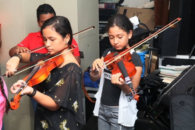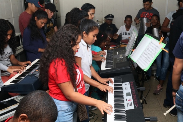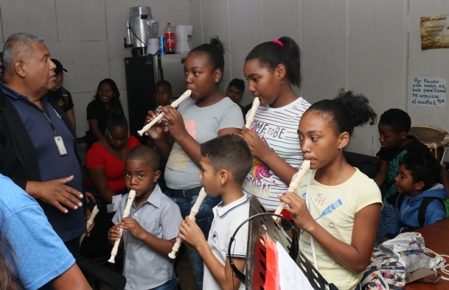“Muy agradecida con la Policía Nacional por este proyecto que les permite soñar a nuestros hijos, y de paso demostrarnos que tienen talento para la música”, expresó Yaneth De Henry madre de familia de uno de los niños que hoy participa en las clases de música que se dictan dentro del programa "Verano Feliz 2019". Para muchos niños y adolescentes ha sido toda una sorpresa tocar instrumentos musicales junto a las unidades policiales como parte de este programa. Este programa impulsado por la Policía Nacional a través del Servicio de Seguridad Ciudadana, busca alejar a los niños del ocio y mantenerlos ocupados en este periodo de vacaciones escolares. El mismo es aprovechado por los hijos de los uniformados, miembros no juramentados, niños y niñas, quienes sueñan con dominar los instrumentos musicales como: violín, flauta, piano, clarinete, entre otros y convertirse en artistas. Esta actividad dio inicio el martes 29 de enero y culmina el próximo 27 de febrero en las instalaciones de la Policía Nacional, en Ancón. |
