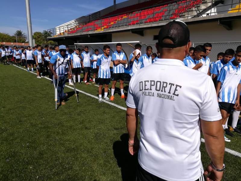 Este domingo 17 de marzo se inauguró la liga de fútbol “El Deporte Transformando Vidas”, por parte del Comisionado Sisinio Núñez Rodríguez, Jefe de la 4ta. Zona Policial en el estadio San Cristóbal de la ciudad de David, con la participación de 12 equipos de jóvenes, con edades entre 14 a 17 años de edad, residentes en barriadas del mencionado distrito, que se encuentren en condición de riesgo social. El Comisionado Núñez dijo al inaugurar que este plan piloto, puesto en ejecución por parte de la Policía Nacional, le da a los jóvenes la oportunidad de demostrar que tienen talento y que muchos deportistas de nuestro país han salido de ligas deportivas similares a éstas. Este es un proyecto integral, ya que además del área deportiva se fortalecerán en el aspecto social, cultural, y educativo. Por su parte, la Licenciada Raisa Palma, dirigente y líder de la barriada Gran David, manifestó su agradecimiento a la Policía Nacional por abrirle las puertas a ella y a estos jóvenes en riesgo social para que transformen sus vidas y sean unos profesionales, y a la vez, insten a otros muchachos a cambiar su actitud. Esta liga se extenderá por tres meses; los próximos partidos se realizarán los domingos, en el estadio 16 de diciembre, ubicado a un costado de las instalaciones de la Estación de Policía de David. |