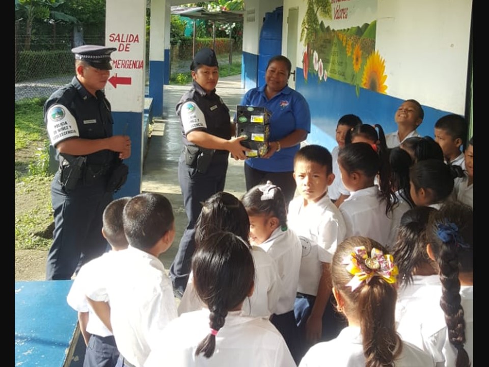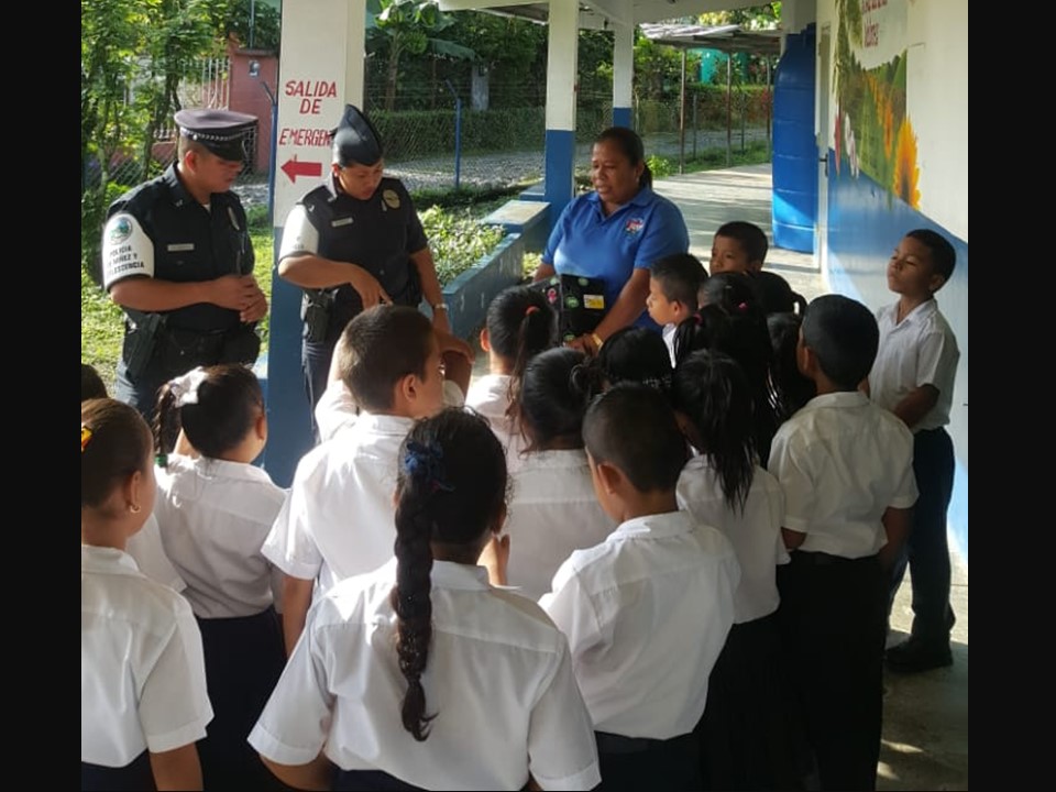 Unidades del Servicio de Policía de Niñez y Adolescencia de la Zona Policial de Bocas del Toro visitaron las escuelas primarias de Finca No. 43 y de Finca 44, en el distrito de Changuinola, con para entregar a los estudiantes utiles de todo tipo, que le servirán para este año lectivo. Los uniformados entregaron zapatos escolares a los niños y niñas de escasos recursos, quienes asistían a clases con calzados deteriorados, en chancletas y calzados no adecuados. Fueron más de 60 niños y niñas los beneficiados por las unidades de Niñez y Adolescencia, quienes todos los días dictan capacitaciones dentro de los programas de Desarrollo Humano como lo son el DARE, GREAT, Jóvenes Contra el Delito, PIDRO y Charlas de prevención. |
