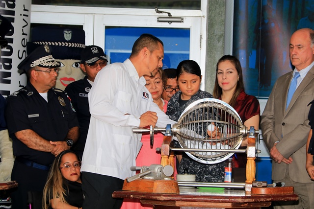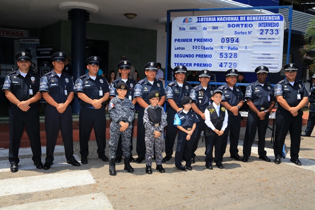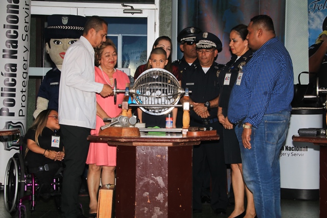 Dentro de su programa de actividades, en conmemoración de los 82 años del Día del Policía, este miércoles se realizó el sorteo intermedio de la Lotería Nacional de Beneficencia dentro de nuestras instalaciones en Ancón. En este sorteo estuvo presente el Director General encargado Jacinto Gómez Cisneros, miembros del directorio policial, autoridades de la Lotería Nacional de Beneficencia, medio de comunicación e invitados especiales. Cuatro niños uniformados, hijos de unidades policiales fueron los encargados de sacar las balotas. En dicha actividad también se desarrollaron presentaciones artísticas, como la orquesta musical y conjunto típico de la Policía Nacional y bailes tradicionales de nuestro país a cargo del conjunto típico de la Escuela de Oficiales de Policía Dr. Justo Arosemena. Los presentes también pudieron aprovechar la venta de productos alimenticios a bajos precios y otros beneficios ofrecidos por bancos y comercios. Durante el transcurso de la semana se estarán desarrollando una serie de actividades culturales y deportivas para celebrar el Día del Policía.