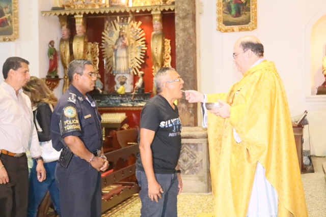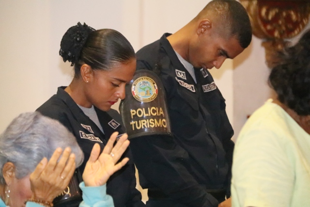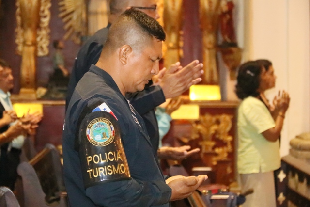 “Agradezco a Dios y a todo el personal por el apoyo brindado para hacer realidad este trabajo que durante 28 años hemos mantenido nuestra cultura de eficiencia y calidad en el servicio que ofrecemos en beneficio de nacionales y extranjeros”, expresó el jefe del Servicio de Policía de Turismo, comisionado Aldo Macre. Unidades policiales pertenecientes al Servicio de Policía de Turismo conmemoraron el 28 Aniversario con una misa de acción de gracia, ofrecida por el padre encargado de las Iglesias del Casco Antiguo, Javier Maña. En medio de la solemne misa el padre Javier Maña de la iglesia Nuestra Señora de la Merced, pidió a Dios por todos los uniformados para que los cuide, los proteja, y les permita seguir realizando su labor de velar por la sana convivencia y la seguridad en el país. El acto religioso estuvo encabezado por el jefe del Servicio de Policía de Turismo, quien estuvo acompañado de demás uniformados, colaboradores de la Institución, y la comunidad en general. Como parte de las actividades conmemorativas también fue entregada una ofrenda en el Altar, y canastilla en el Hospital del Niño. La labor del Servicio de Policía de Turismo es muy importante, su presencia da confianza a propios y extraños, actualmente este servicio cuenta con policías que tiene la capacidad de guía turístico, además hay expertos en idiomas. |