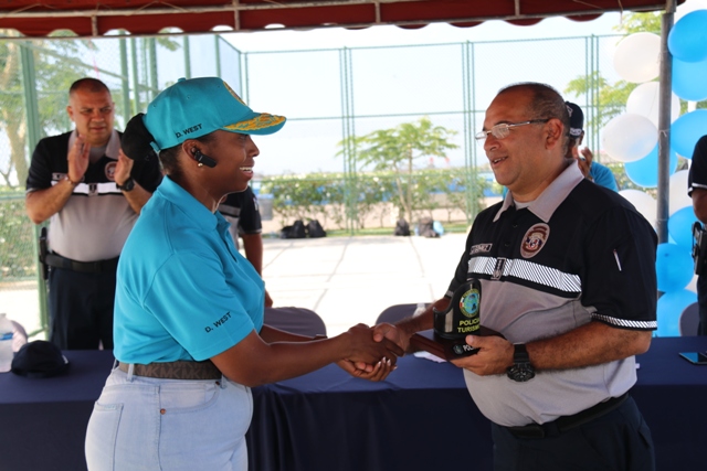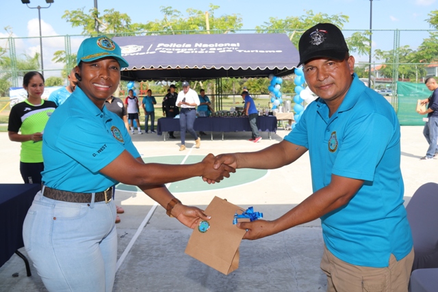 “Felicitó a todas las unidades policiales del Servicio Policial de Turismo por su ardua labor, por la efectividad que realizan, ustedes son el primer contacto que tiene los turistas al llegar al país”, expresó El Subdirector General de la Policía Nacional, Jacinto Gómez Cisneros. El Servicio de Policía de Turismo brindó a todas sus unidades policiales distintas actividades recreativas y deportivas, en el marco del 28 aniversario que festeja este año. En horas de la mañana iniciaron con el toque de las dianas por parte de la banda de la Policía Nacional, también hubo reconocimientos a las unidades destacadas. Se reconoció la disciplina ejemplar, porte policial, mejor captura, desempeño policial, mejor ciclista de turismo y unidades administrativas destacadas. Se realizaron distintas competencias de confraternidad, donde los uniformados del Servicio de Policía de Turismo a nivel nacional, participaron en partidos de fútbol. La Jornada se realizó en la cancha sintética ubicada en la Cinta Costera III que tiene distintas canchas y un gran espacio verde que permitió disfrutar de una jornada agradable que también brindó espacio para la música y la sana diversión. El evento contó con la presencia del Subdirector General de la Policía Nacional, Jacinto Gómez Cisneros, comisionado y jefe del Servicio de Policía de Turismo, Aldo Macre, Gustavo Cogley, Director Nacional de Operaciones, Comisionado Ricky González, jefe del Servicio de Sedes Diplomáticas, y el comisionado Roger Rodríguez, jefe del Servicio Policial del Metro, Subcomisionada Diva West, ejecutiva del Servicio de Policía de Turismo, además de unidades policiales y sus familiares.