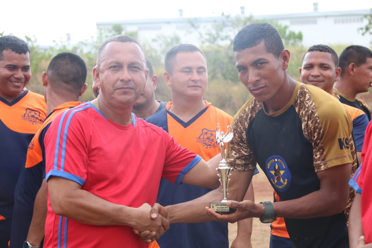 Con alegría y diferentes actividades la Unidad Canina de la Policía Nacional celebró sus XXXVII aniversario entre el personal juramentado, no juramentado y familiares. Dicha unidad fue creada el 29 de abril de 1982 perteneciendo en ese entonces a la Compañía de Infantería Victoriano Lorenzo, actualmente asignada a la Dirección Nacional de los Servicios Especiales. En horas de la mañana dieron inicio las tradicionales dianas a cargo de la banda de música de la institución, seguido se dio paso a la competencia en traje de combate. Durante el día los pequeños de la casa gozaron del brinca brinca y juegos por parte del reconocido payasito “Firu”, a su vez todos los presentes degustaron de ricos asados y refrescos mientras disfrutaban de la Copa Rotativa 2019, entre cuatro equipos seleccionados. Este evento fue propicio para entregar al Subteniente Héctor de León, Sargento 2 Omar Morales y al Cabo 2 Roderick Ortega la medalla al Servicio Distinguido por su disciplina y su acción eficiente dentro de la unidad. A este evento asistió el comisionado Javier Rodríguez Director Nacional de los Servicios Especiales quien acompaño al capitán Yoriel Fernández jefe de la Unidad Canina y a todos los presentes. La UCAN está integrada por unidades capacitadas en el uso y manejo de los canes auxiliares de policía en las distintas especialidades (detección de narcóticos, explosivos, canes de patrullaje e intervención policial, agilidad y destreza, búsqueda y rescate de personas vivas, terapia asistida con canes y auxiliares de enfermería canina. |