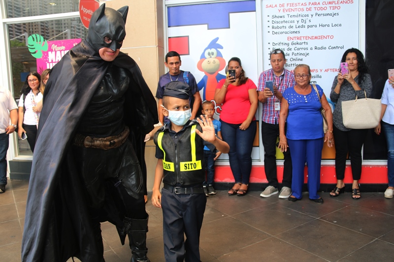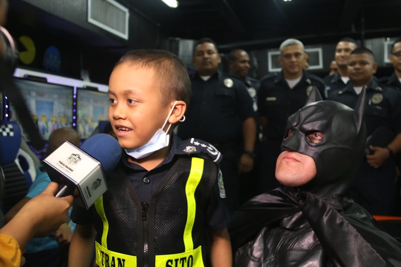 El pequeño Franklin Iturrado de 7 años de edad, se robó la atención de muchos corazones bondadosos cuando se le preguntó ¿Qué desea ser cuando grande? y ¿Quiénes son tus superhéroes favoritos? y dijo que anhelaba ser miembro de la Dirección Nacional de Operaciones del Tránsito de la Policía Nacional. Su respuesta tuvo alcance en el personal de importantes empresas e instituciones como la fundación Make a Wish, Konzerta, la Policía Nacional, entre otras que hicieron su sueño realidad. Franklin desde muy pequeño ha conocido el sufrimiento, es paciente del Hospital del Niño, debido a un diagnóstico de Leucemia. Es oriundo de la provincia de Los Santos, Guararé, tiene dos hermanitos, cuando sea grande su mayor sueño es vestir el uniforme de la Policía Nacional y brindar seguridad a los panameños pero en las vías como lo hacen nuestras unidades del Tránsito. Este sueño se hizo realidad y el pequeño se le entregó el uniforme de la Institución y se le otorgó el rango de comisionado. “Nos complace trabajar de cerca con todas las personas que sin esperar nada a cambio se esmeran por brindar alegría y esperanza a los que más la necesitan. Hoy, Franklin Iturrado cumple su deseo de ser parte de nuestra noble Institución” destacó el Director General de la Policía Nacional, Alonso Vega Pino. El pequeño también conoció a su súper héroe favorito “Batman”, con quien compartió, además dio un paseo en la patrulla de la Policía Nacional, hacia una pista de carro donde le esperaban otras sorpresas. Pero la historia no termina ahí… Franklin también es fans del “Hombre Araña” con quien también compartió. Sin duda un día inolvidable para este niño y sus amiguitos de Fanlyc quienes lo acompañaron al igual que sus familiares a jugar, bailar, abrir regalos, y de paso a un gran pastel y piñata. De eso precisamente se trata la iniciativa de estas empresas e instituciones que buscan cambiar el dolor y sufrimiento de niños con enfermedades crónicas o terminales por momentos de esperanza, diversión y alegría.
