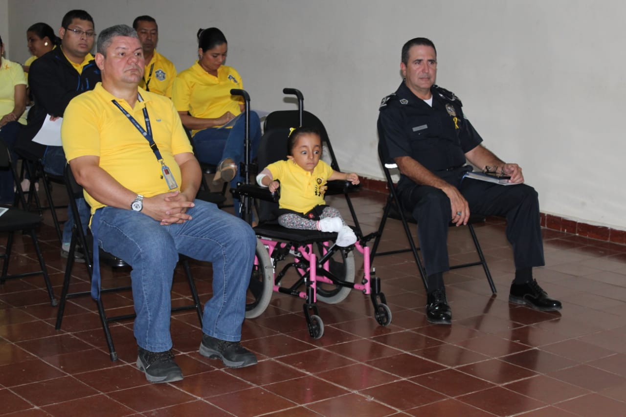 En el salón de reuniones del a 6ta. Zona de Policía de Herrera se llevó a cabo una Jornada de Sensibilización de la Osteogénesis Imperfecta, o niños de Cristal, en donde se dio información sobre esta condición, síntomas y tratamiento para este trastorno genético. Se contó con la presencia de Milagros García, niña de Cristal hija de nuestro Compañero Teniente Edson García, de 7 años de edad, quien fue recibida por el Comisionado Ezequiel Carrizo, jefe de la Zona de Policía de Herrera, junto a todo el personal de la zona, y a la vez homenajeada por las unidades policiales. En el rostro de la pequeña se reflejaba, mucha alegría, en momentos que compartía con el personal uniformado y recibía obsequios a medida que se desarrollaba del evento. |