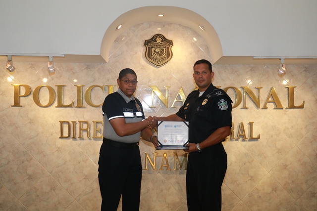El subcomisionado Carmelo Cherry junto al mayor Oscar Bernal y el cabo 1º Ricardo Pinilla, retornaron al país, luego de participar en la Conferencia de Ciberdefensa: en el Hemisferio Occidental, organizada por la Fundación Interamericana de Defensa en Bogotá, Colombia. Este evento que se desarrolló los días 14 y 15 de mayo, contó con la participación de miembros de los estamentos de seguridad y expertos de 18 países de América y España, quienes compartieron sus experiencias en la implementación de estrategias de seguridad en este ámbito. “La Policía Nacional, mantiene la cooperación activa con organismos e instituciones de seguridad en la región, por lo que estas instancias son importantes, debido a que tienen por objetivo construir y fortalecer alianzas estratégicas multilaterales y bilaterales para promover las buenas practicas en el intercambio de información dirigidas en hacer frente a las amenazas cibernéticas”, destacó el subcomisionado Cherry. Los uniformados fueron recibidos por el Secretario General de la Policía Nacional, comisionado Domingo Espitia, quien los felicitó por su excelente desempeño en este macro evento.