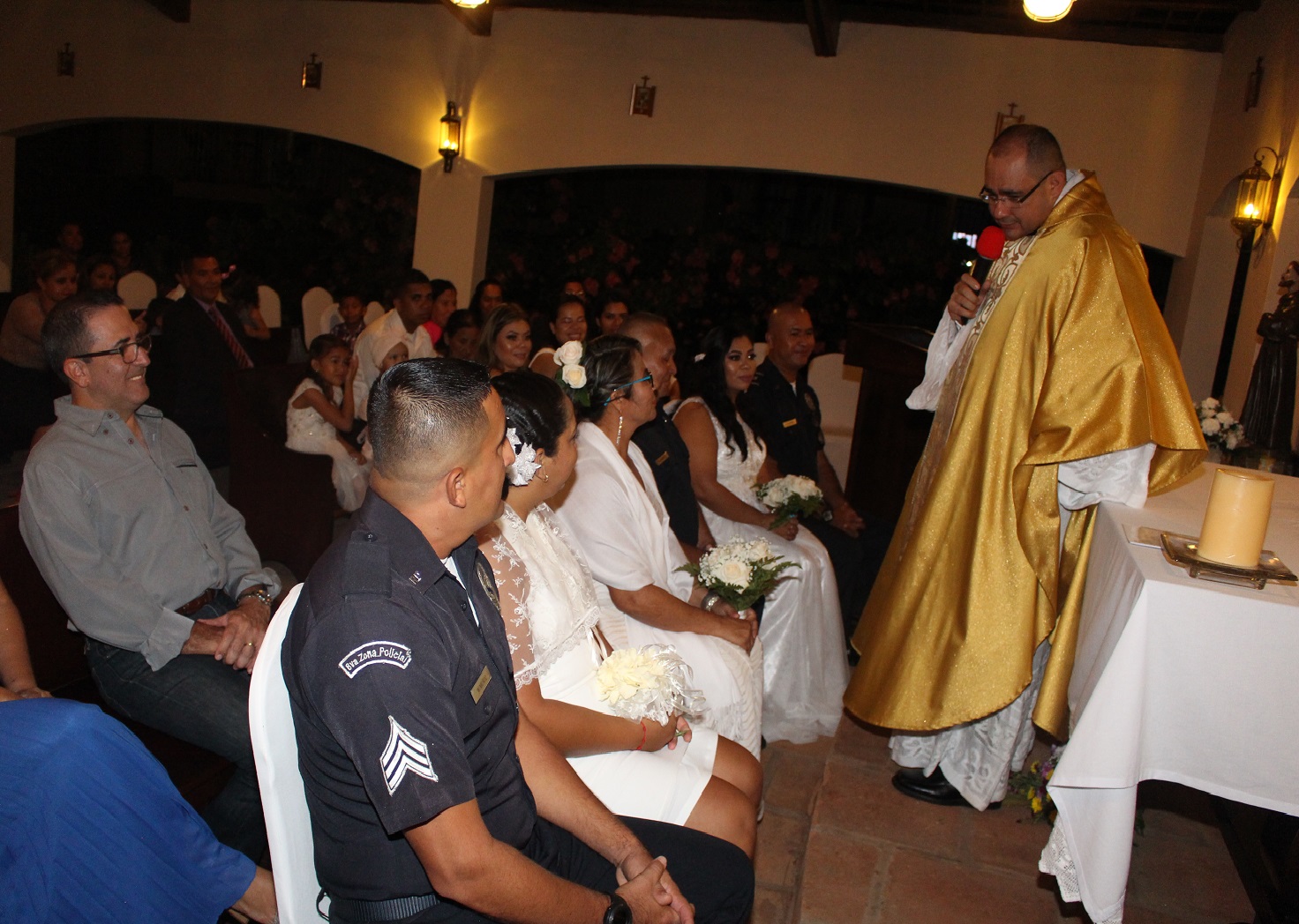 En una ceremonia realizada en la Capilla de El Hotel Cubitá, del distrito de Chitré, tres unidades de la Policía Nacional contraen matrimonio, en una actividad organizada por La Capellanía de La 6ta. Zona de Policía de Herrera. En el acto se celebró el matrimonio del Teniente Fabián Flores y Francisca Cruz, Subtte. Agapito Franco con Enilda Barría; y el Sgto. 2do. Wilberto Muñoz y Aracelis Barría; donde se contó con la presencia del comisionado Ezequiel I. Carrizo J, jefe de la Zona de Policía de Herrera, acompañado por unidades policiales y familiares de los recién casado. La eucaristía fue presidida por el padre Raúl De León, capellán de la 6ta. Zona de Policía de Herrera.