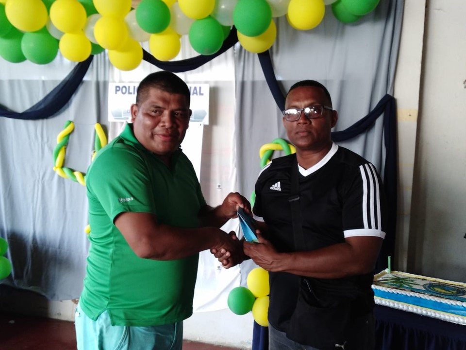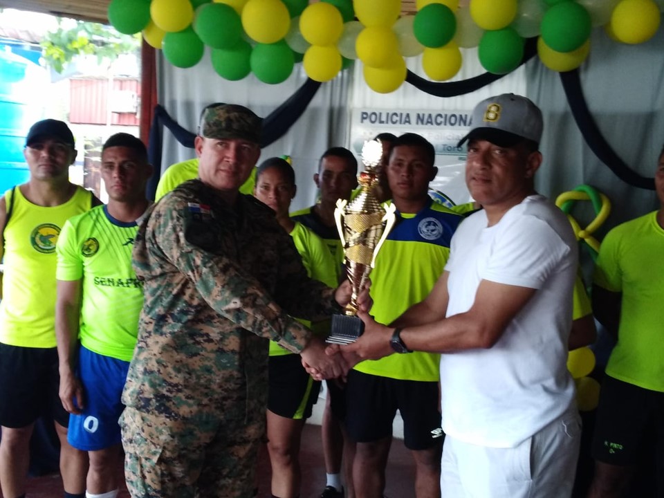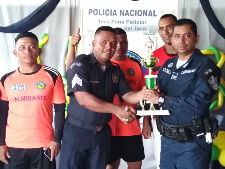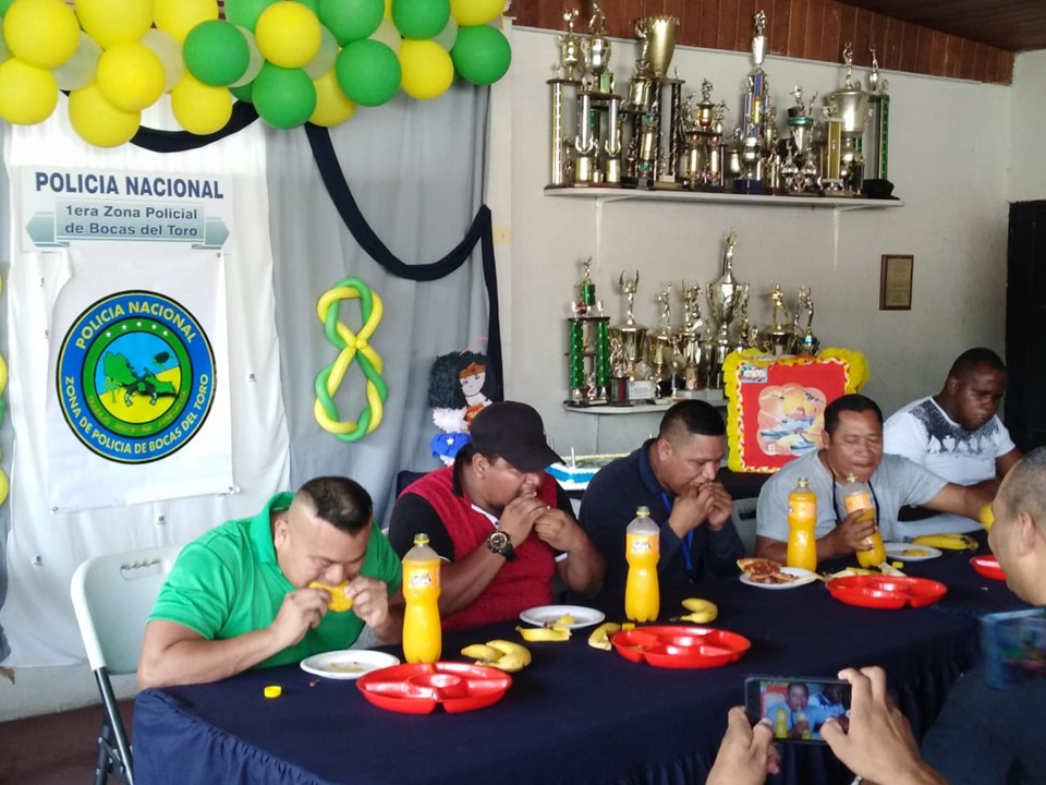 Unidades de la Policía Nacional de servicio en la Zona Policial de Bocas del Toro, desde tempranas horas de la mañana de este miércoles 5 de junio celebraron por todo lo alto el aniversario N°48. Las actividades iniciaron con una maratón de 4 kilómetros donde participaron corredores representando las 4 áreas policiales. Luego, a las 09:00 horas se realizó una misa en la iglesia Santa Isabel de Hungría la cual fue dirigida por el párroco Jesús Concepción y estuvieron presentes cuarenta unidades. Luego dio inicio un torneo de futbol donde resultó ganador el Equipo del Servicio Especial de Fronteras (Guabito), las unidades distinguidas en el servicio policial fueron agasajadas, se realizó un concurso de canto y todos juntos entonaron el feliz cumpleaños con un enorme pastel en conmemoración a la 1ra. Zona Policial. El comisionado Julio Cesar Jean Louis, jefe de la 1ra Zona Policial felicitó a todas las unidades de Bocas del Toro por el esfuerzo que realizan por brindarles la seguridad a todos los Bocatoreños. En nombre del Director General de la Policía Nacional, Alonso Vega Pino dio las gracias e instó a seguir trabajando como lo vienen haciendo. |