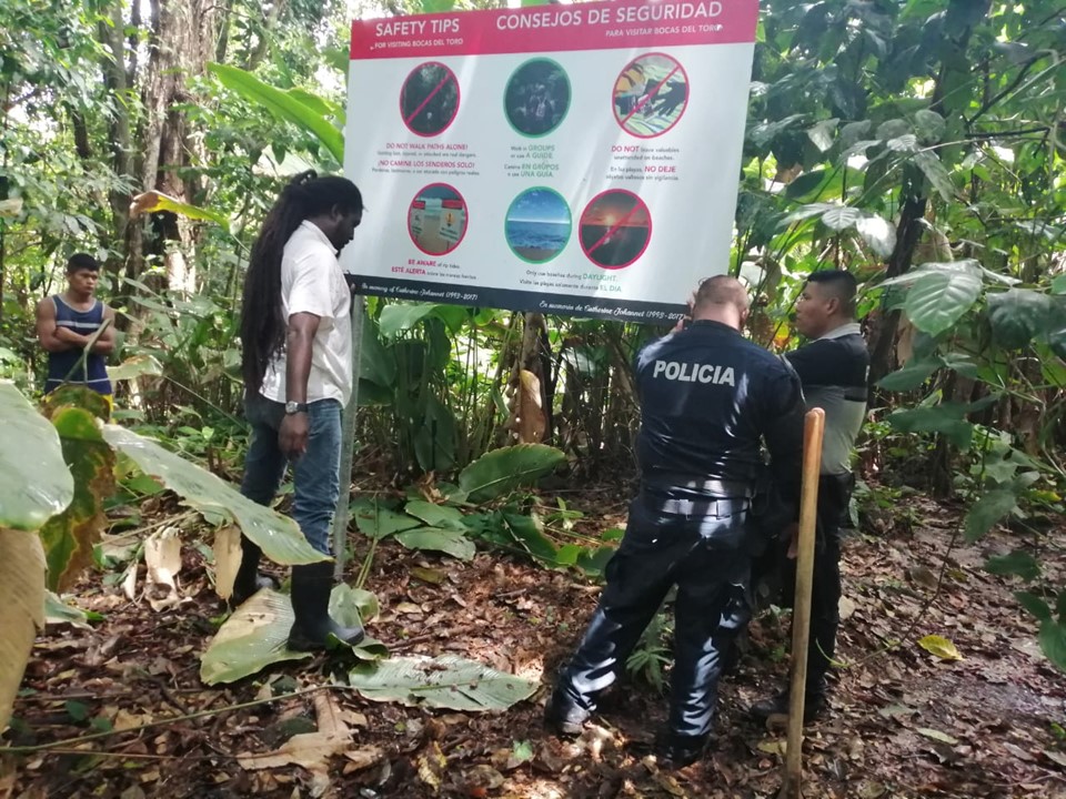 Unidades del Servicio de Policía de Turismo de la 1ra Zona Policial de Bocas del Toro en coordinación con funcionarios de la Embajada de Estados Unidos y personal de la Secretaria de Turismo del Municipio de Isla Colón, procedieron a la instalación de letreros con mensajes preventivos a turistas de que visitan las playas. Son seis (06) Letreros puestos en áreas de afluencia de Turismo como parte de la campaña de orientación a turistas en lugares como Playa de Red Frog, playa Wisard, la Cabaña e Isla Bastimento. La Policía Nacional mantiene medidas preventivas en diversas playas de esta región del país, garantizandoles la seguridad a visitantes y residentes. |