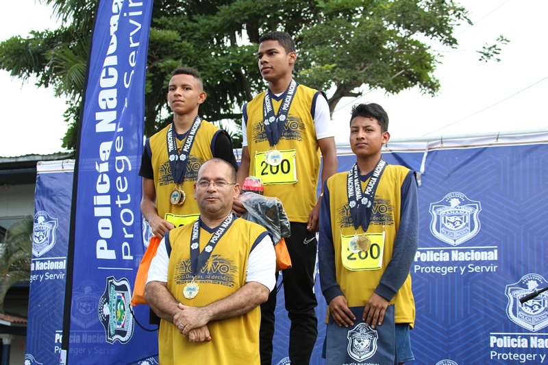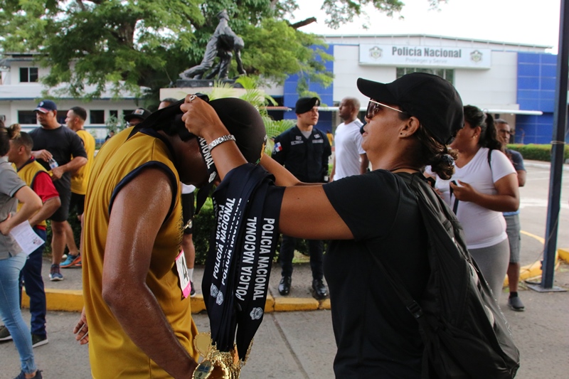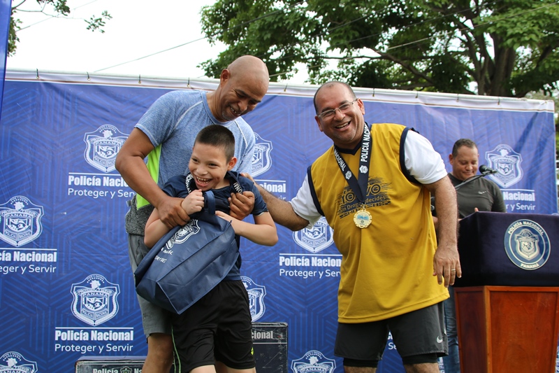 La Policia Nacional realizo la mañana de este domingo 23 de junio la IX edición de la carrera atlética "Yo vivo sin drogas, tú decides 5k”, que se realiza a nivel internacional conmemorando al Día Internacional de la Lucha contra el Uso Indebido y el Tráfico ilícito de Drogas, que se celebra el 26 de junio de cada año. El subdirector de la institución Jacinto Gómez junto a miembros del directorio policial, directores de estamentos de seguridad y agregados militares, se dieron cita a esta carrera junto a más de un centener de personas que participaron. “Este es un evento para nuestras unidades y la comunidad en general, el cual busca concientizar a todo un país sobre el uso de las drogas y enseñarles la importancia de practicar deportes” señaló el Subdirector General. Los corredores participaron en las categorías femenino y masculino estudiantil, 18-29,30-39,40-49 y 50 en adelante, partiendo desde los estacionamientos de la Policía Nacional, hasta llegar al puente vehicular de Albrook para luego retornar por la Avenida Omar Torrijos y finalizar en esta institución. A su llegada a la meta a todos los participantes se les entregó una medalla conmemorativa al evento mientras que los ganadores recibieron obsequios y se les colocó su medalla de oro, plata y bronce, respectivamente. El niño Gabriel Selles a pesar de su limitación participó en esta actividad junto a sus padres es por ello que el Subdirector General hizo entrega de una medalla y premios. Es importante mencionar que esta carrera se realizó simultáneamente en Guatemala, México, República Dominicana, Honduras, Colombia y demás países que integran la comunidad de Policías de América.