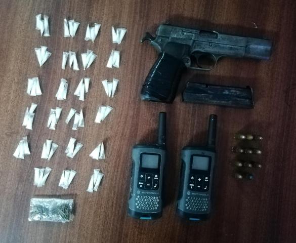 Varios sobres con presunta sustancias ilícitas, radios de comunicación, municiones y un arma de fuego, fue el resultado de allanamientos realizados por unidades de la Policía Nacional junto al Ministerio Público en el corregimiento Victoriano Lorenzo, distrito de San Miguelito. En total se decomisaron 69 carrizos y un sobre de presunta cocaína y marihuana, que era destinados al microtráfico. En tanto, el arma de fuego incautada no contaba con los permisos correspondientes y mantenía en su proveedor 11 municiones. Producto de esta acción policial, fueron aprehendidos tres ciudadanos, quienes presuntamente están relacionados al delito de Seguridad Colectiva y Posesión Ilícita de Armas de Fuego. Las personas aprehendidas junto a las evidencias fueron puestas a órdenes de las autoridades correspondientes. |